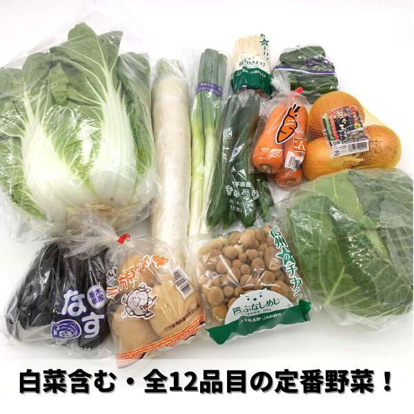 【白菜入り定番野菜セット12品】(白菜・キャベツ・大根・玉葱・胡瓜・茄子・人参・じゃがいも・しめじ・えのき・長葱・ピーマン)【大田市場直送】野菜詰め合せ 野菜セット 定番野菜 中身が分かるセット