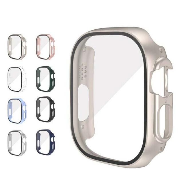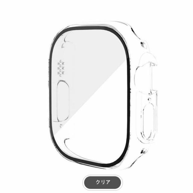 Apple Watch Ultra 2/1 ケース カバー 49mm 強化ガラス(ガラスフィルム)付き 全面保護 液晶保護ケース アップルウォッチ ウルトラ2/1 フィルム一体 ハードケース 単色/クリア 強化ガラス付き