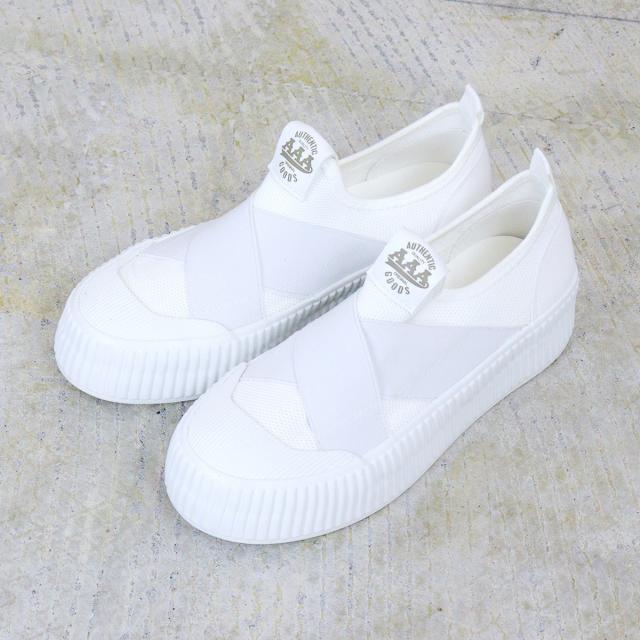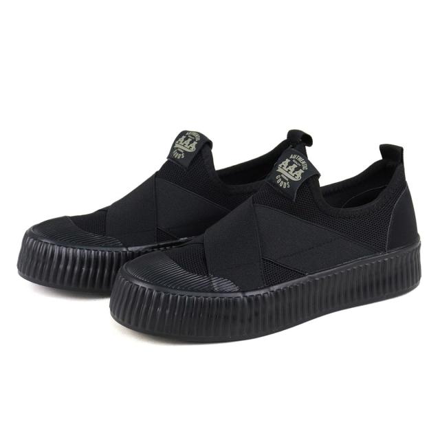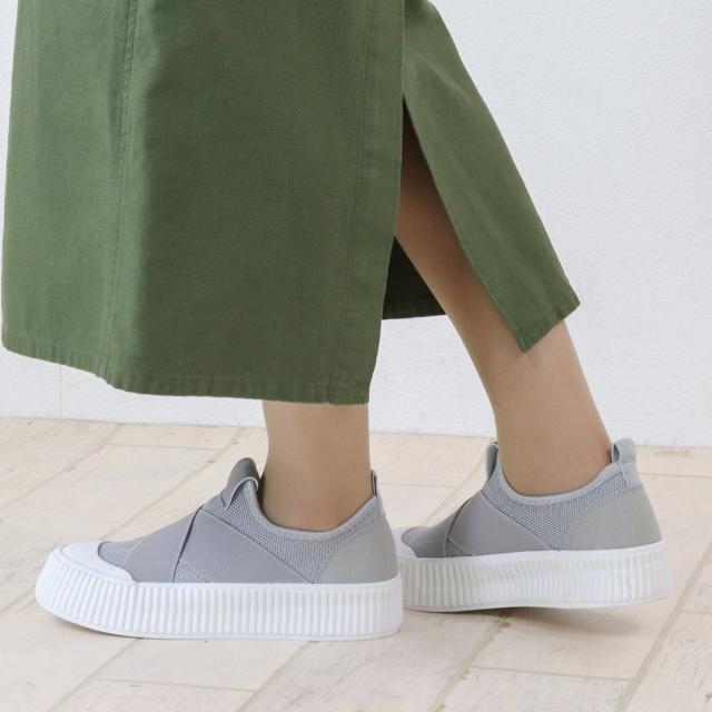 甲のフィット感と幅のゆとりある着用感が、ストレスフリーで履ける靴紐の無いゴムバンドタイプのスリッポン!