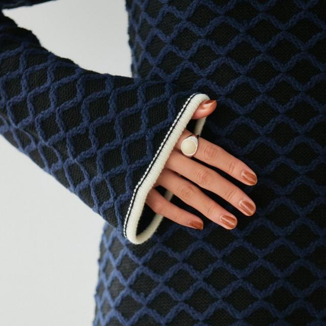 ・クロス編みを施したことで凹凸感のあるワンピース。