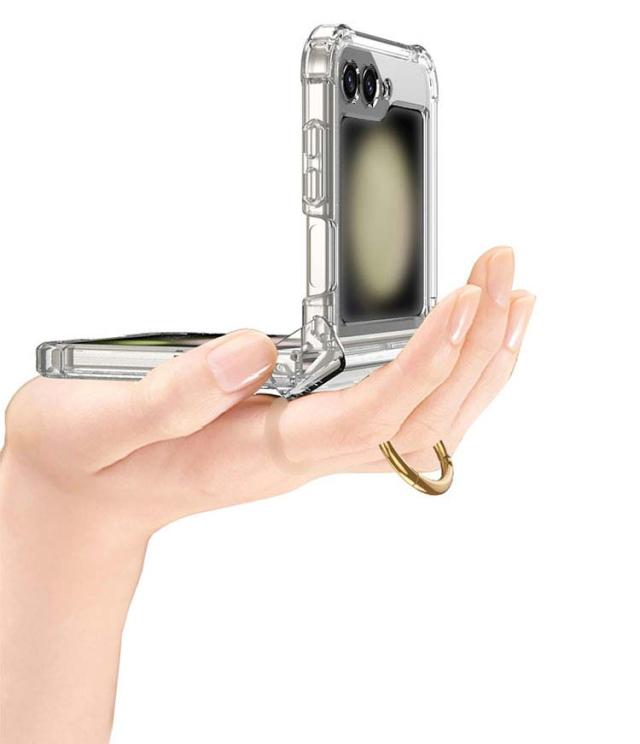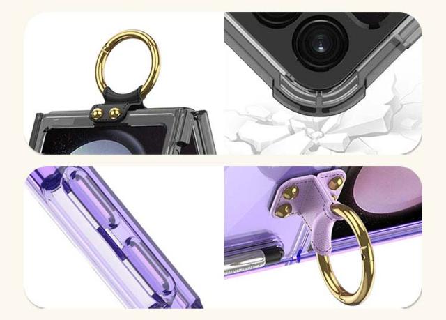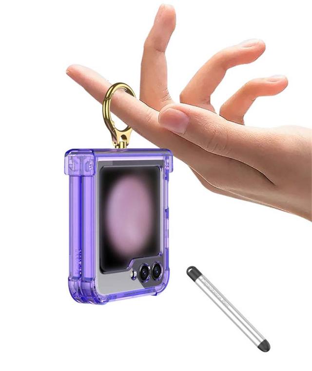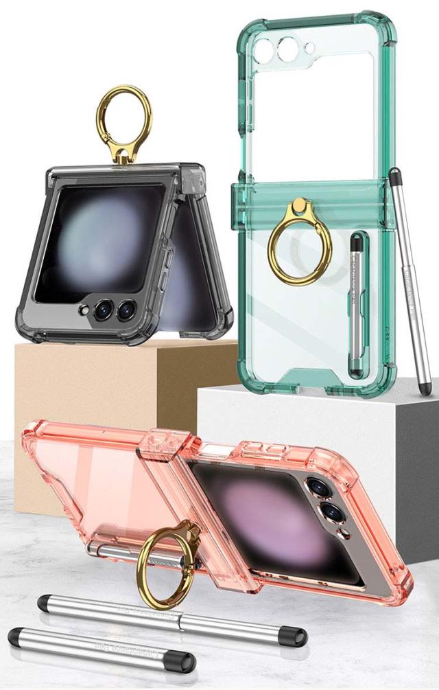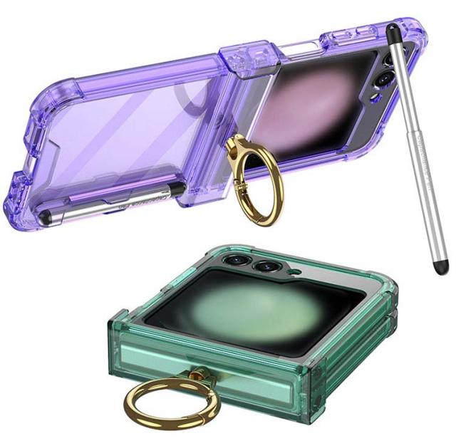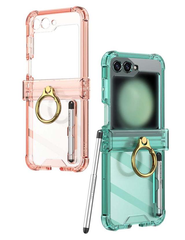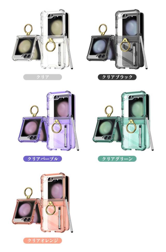 Samsung Galaxy Z Flip5 クリアケース 耐衝撃 カバー 折りたたみ型 透明 角 保護 コーナーバンパー 一体型リング付き ペン収納 タッチペン付き シンプル ギャラクシーZ フリップ5 保護ケース アンドロイド スマートフォン/スマフォ/スマホケース/カバー