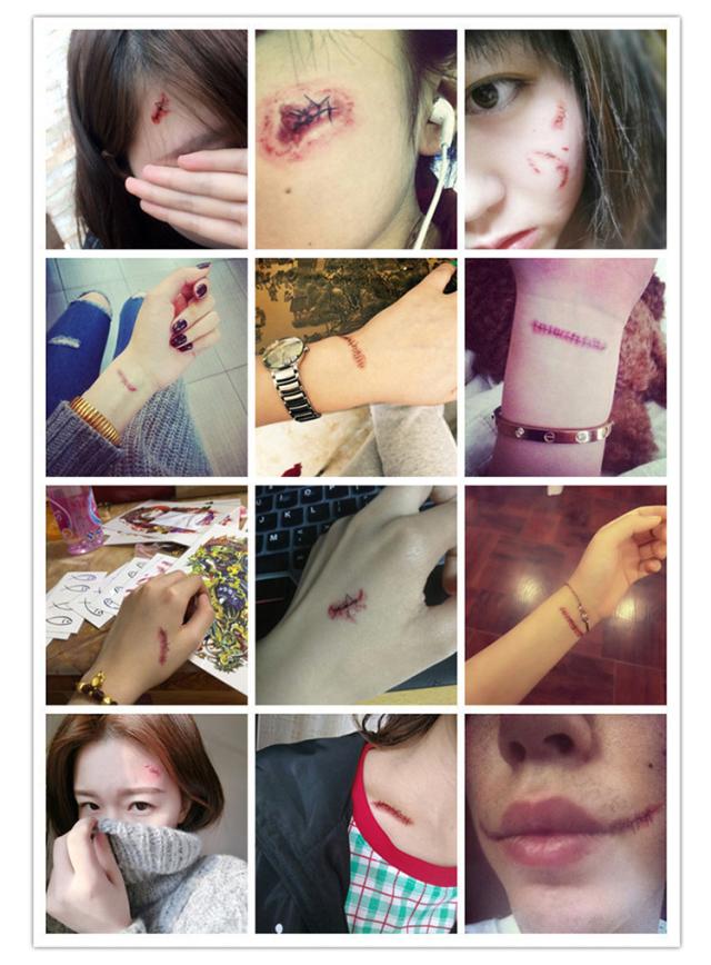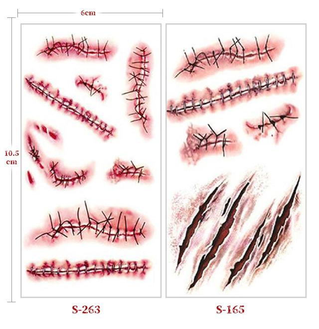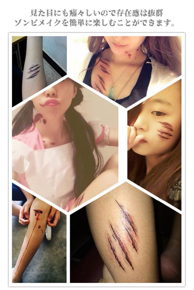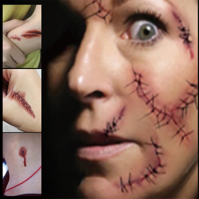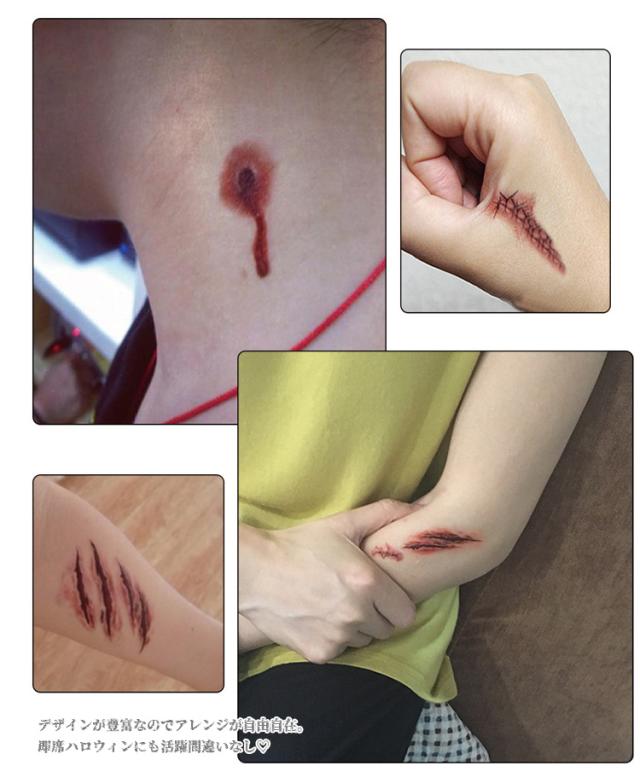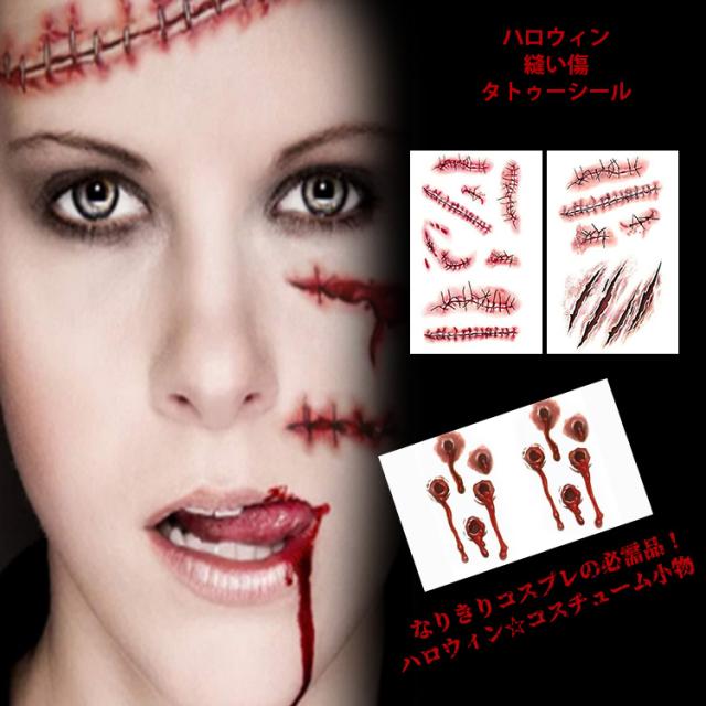 ハロウィンコスプレ 縫い傷 タトゥーシール 3枚セット 転写シール 裂傷 縫い跡 歯型 引っかき傷 特殊メイク 傷シール 仮装 コスプレ メイク 小道具 ホラー 傷 刺青 パーティ コスチューム小物 コスプレの必需品 小物