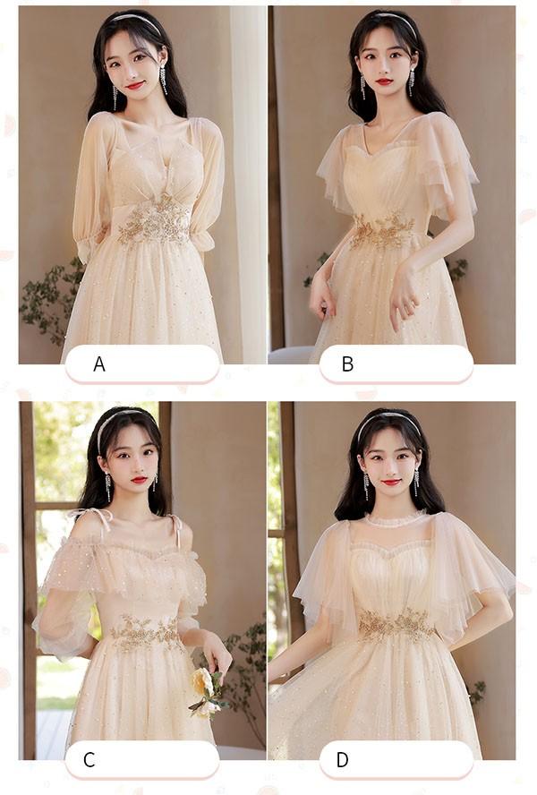 ブライズメイド ドレス ミモレ丈 シャンパン 袖付き 二次会 大きいサイズ 結婚式 体型カバー 半袖 フリル オフショルダー 謝恩会 二次会 卒業式 花嫁 ピアノ 発表会 ドレス 演奏会 20代 bi290zezezr