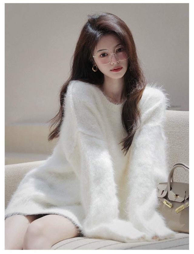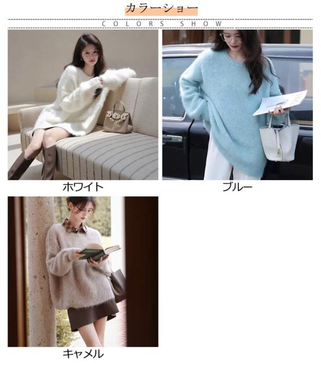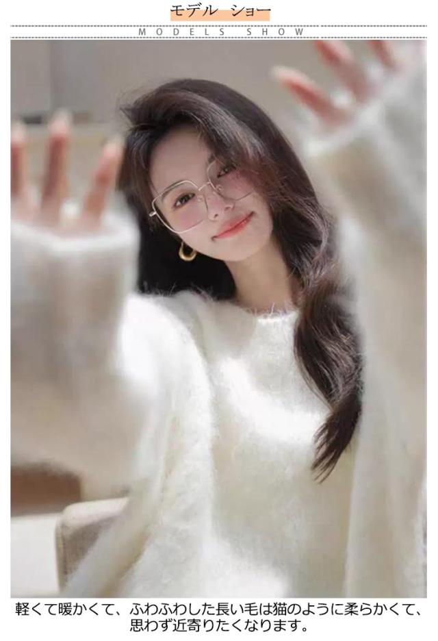 | ゆるい雰囲気のモヘアセーターです。 軽くて暖かくて、ふわふわした長い毛は猫のように柔らかくて、思わず近寄りたくなります。 パステルカラーで、清潔で癒されます。 これを着ると、真冬でも日差しのぬくもりを感じることができます。 | |