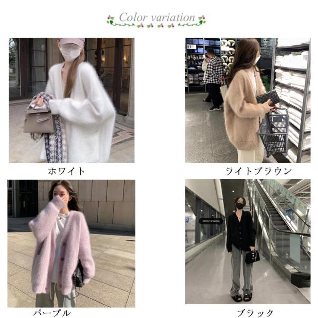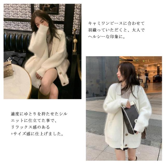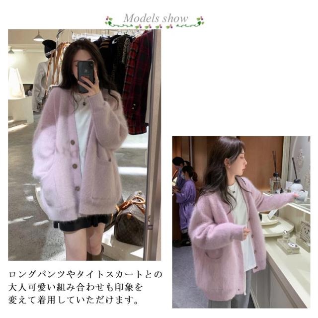 Vネック レディース 秋冬 ふわふわ 暖かい カーディガン モコモコ ニットコート ゆったり 長袖 重ね着 コーデ 防寒 羽織り 無地 アウター 冬服 きれいめ カジュアル 韓国 春 秋 冬 ニットカーディガン