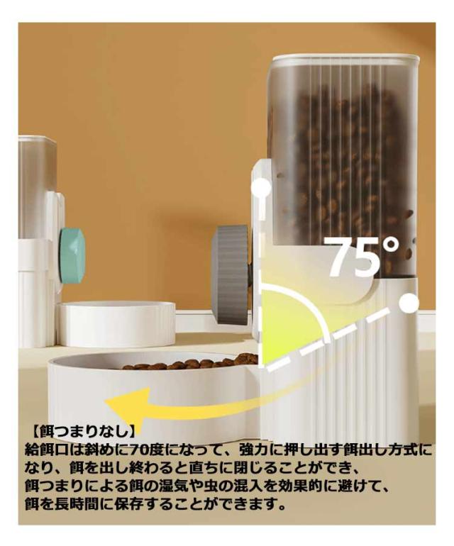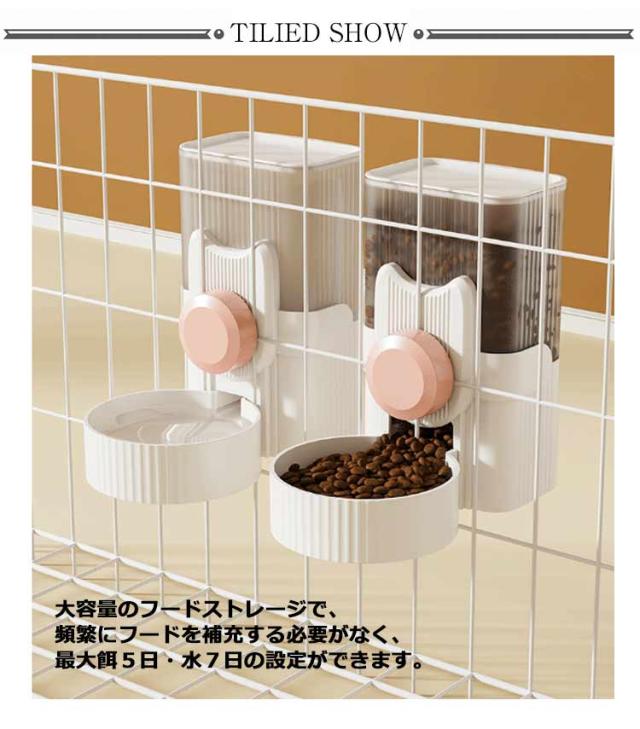 | 【お留守番対策】大容量のフードストレージで、頻繁にフードを補充する必要がなく、最大餌5日・水7日の設定ができます。帰宅が遅い時や、急な出張、短時間の旅行など飼い主さん不在でも、オートペットフィーダーはネコちゃん、ワンちゃんに自動給餌給水で安心安全です。 【ひっくり返し防止】ケージ・サークルなどに取り付けて使うことができるペット用食器、安定性が良く、ペットがお皿をひっくり返すことがないのでとっても便利なアイテムです。 【高さ調整可能】3-6CM間隔のケージに適用!ペットにぴったりの高さに調節できるから、首への負担を減らすことができます。 【安全安心な材質】高品質な食用可能のPP素材で安全無毒。ペットの健康を守ります。 【残量が一目でわかる】科学的摂食、透明で中身が見やすく、餌の状況がよくわかりエサの容量も簡単に把握することができるます。 【水やフード補充簡単】トップの蓋は開けることができ、且つ広口タイプで餌や水の入れ替えもラクラク。 【餌つまりなし】給餌口は斜めに70度になって、強力に押し出す餌出し方式になり、餌を出し終わると直ちに閉じることができ、餌つまりによる餌の湿気や虫の混入を効果的に避けて、餌を長時間に保存することができます。 | |
