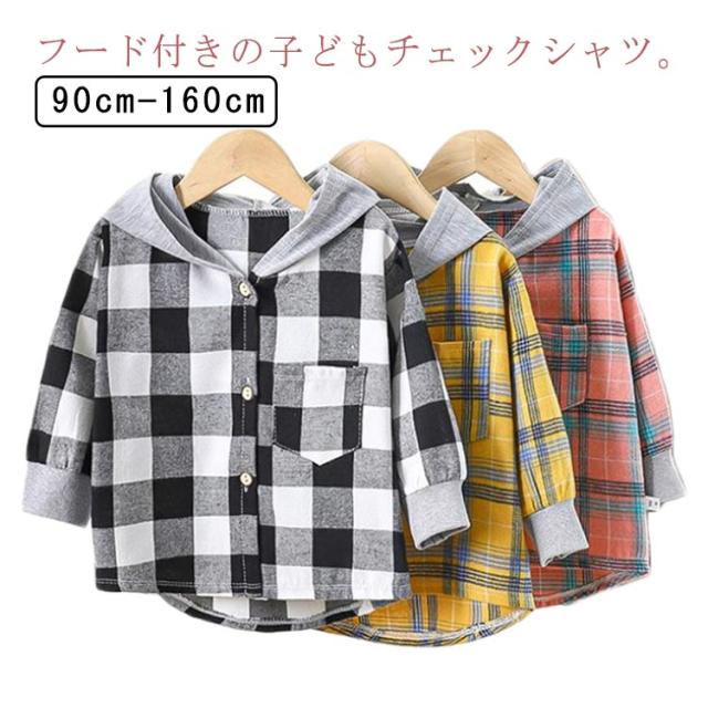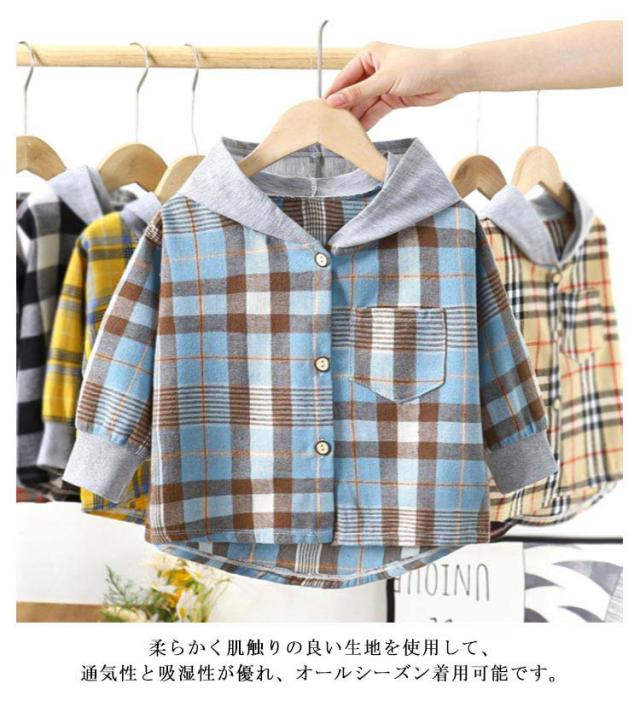 長袖 キッズ チェックジャケット フード付き 子供 シャツジャケット パーカー 男の子 子ども 子供 春 フード付きチェックシャツ