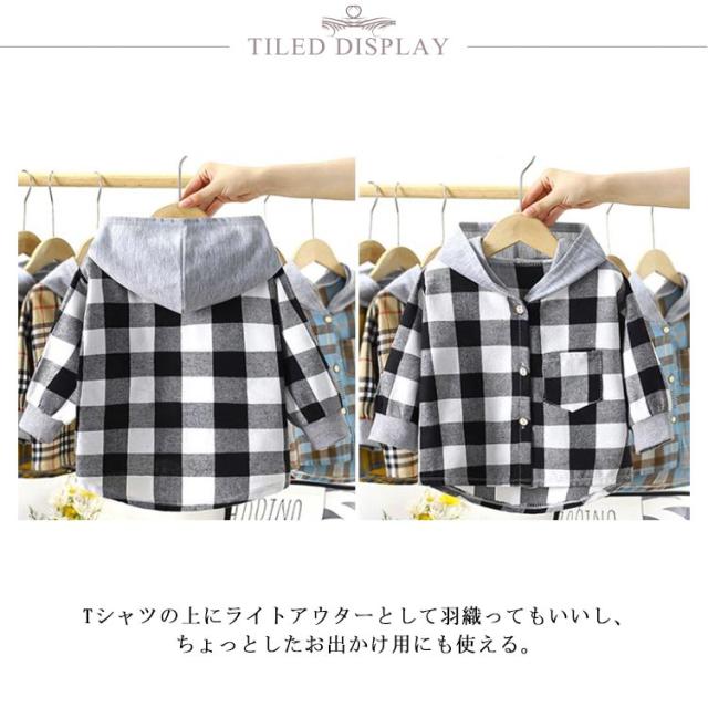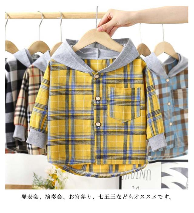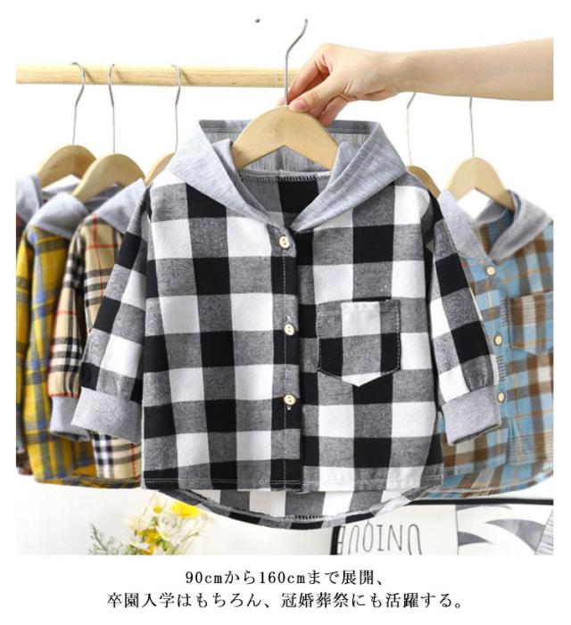 | フード付きの子どもチェックシャツ。 Tシャツの上にライトアウターとして羽織ってもいいし、ちょっとしたお出かけ用にも使える。 柔らかく肌触りの良い生地を使用して、通気性と吸湿性が優れ、オールシーズン着用可能です。 90cmから160cmまで展開、卒園入学はもちろん、冠婚葬祭にも活躍する。 発表会、演奏会、お宮参り、七五三などもオススメです。 子供の日に撮影用、さらに友達の子供によいプレゼントと思います。 | |