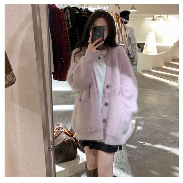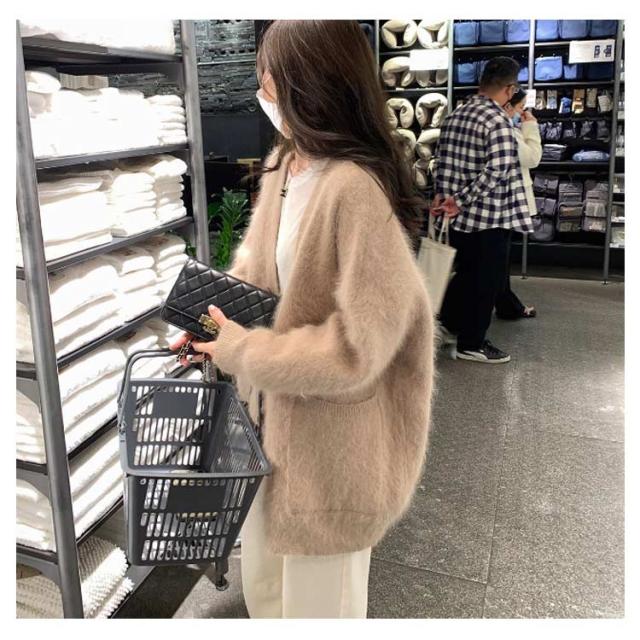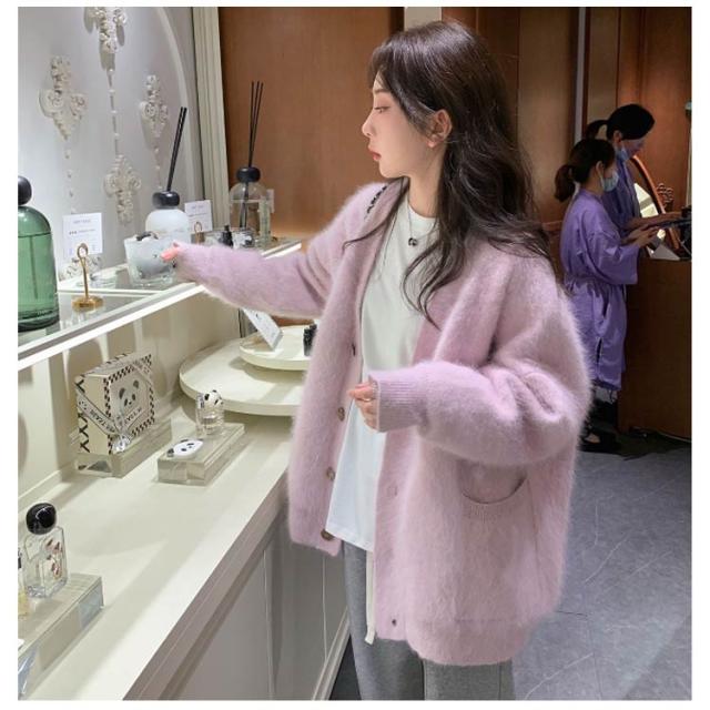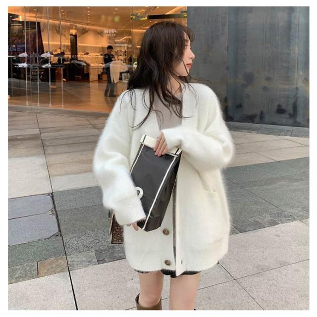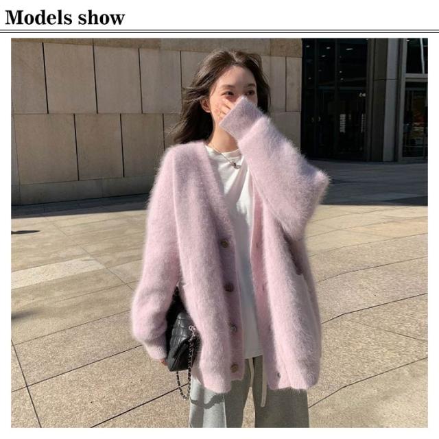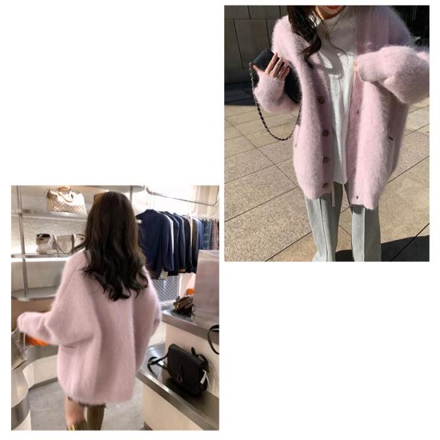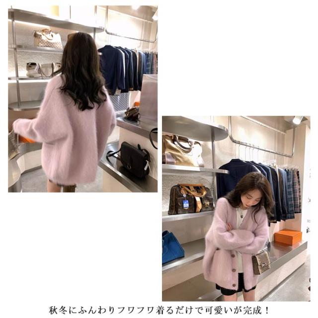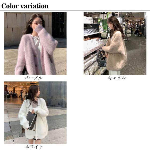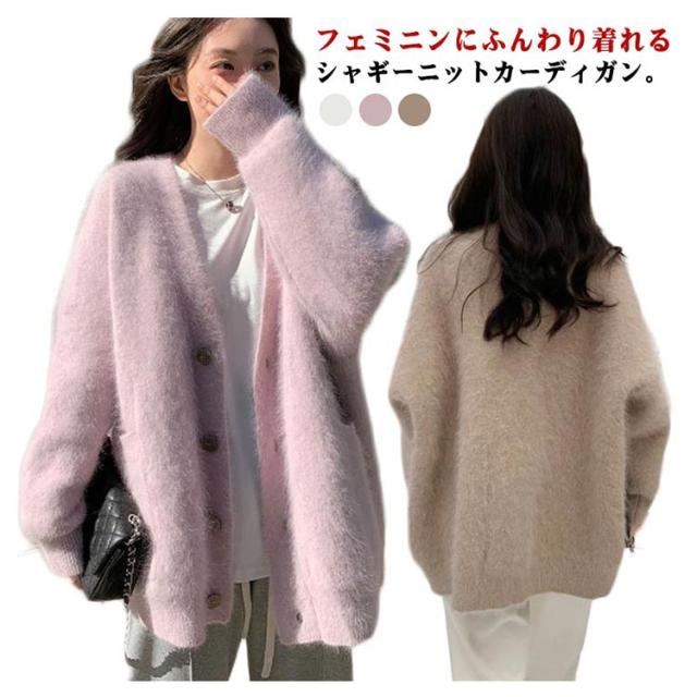 ポケット付き カーディガン モコモコ レディース アウター ニット Vネック 長袖 ふわふわ コート 厚手 アウター 冬服 秋冬 前開き 羽織 暖かい 冷房対策 防寒 無地 柔らか きれいめ ゆったり カジュアル ニットカーディガン