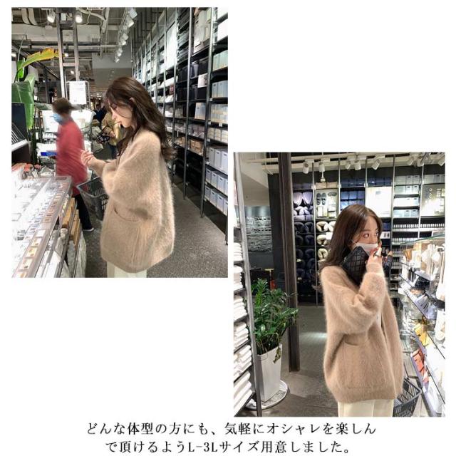 | フェミニンにふんわり着れるシャギーニットカーディガン。 秋冬にふんわりフワフワ着るだけで可愛いが完成! どんな体型の方にも、気軽にオシャレを楽しんで頂けるようL-3Lサイズ用意しました。 通勤も通学も着用可能。 | |
