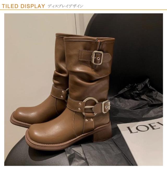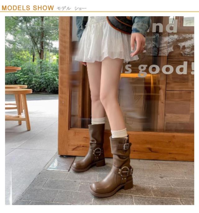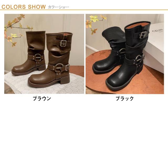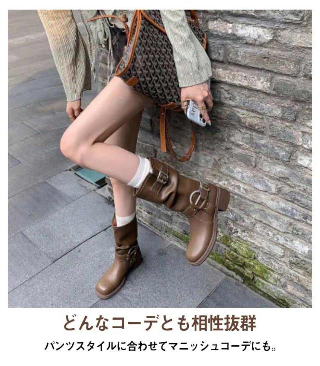 ミドル丈 ルーズ ショートブーツ ローヒール 春 靴 レディース くしゅくしゅブーツ 冬 厚底 ルーズ ミドルブーツ エンジニアブーツ 大きいサイズ 可愛い 防滑 美脚 秋 大人 カジュアル レトロ 秋冬 防水 滑り止め きれいめ 韓国 ミドルブーツ