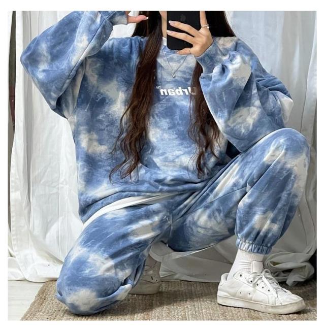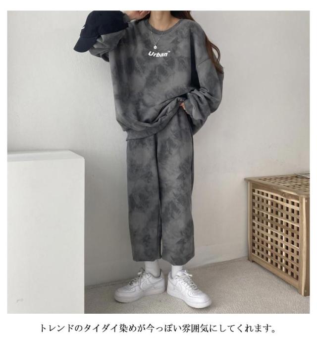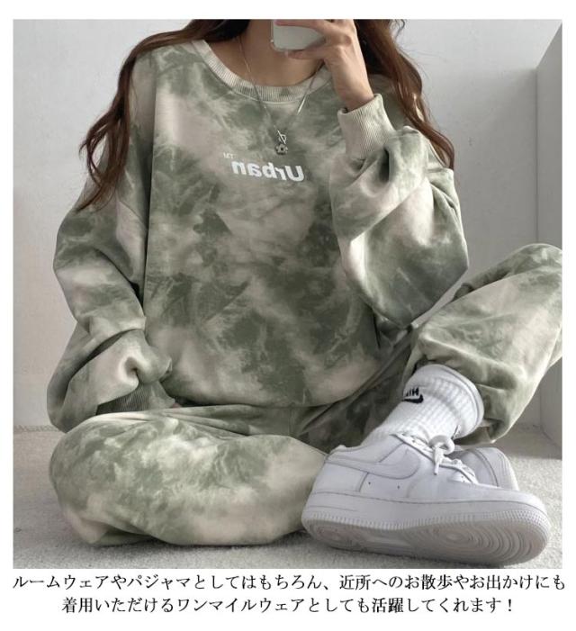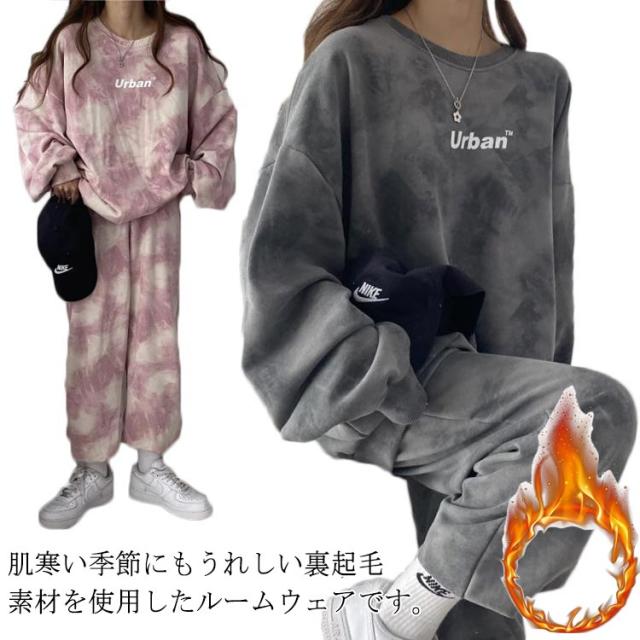 裏起毛 上下セット 冬 ロングパンツ レディース タイダイ柄 秋 部屋着 長袖 トレーナー スウェットパンツ 寝巻き ナイトウェア スポーツウエア ビッグシルエット ゆったり ジャージ ルームウェア