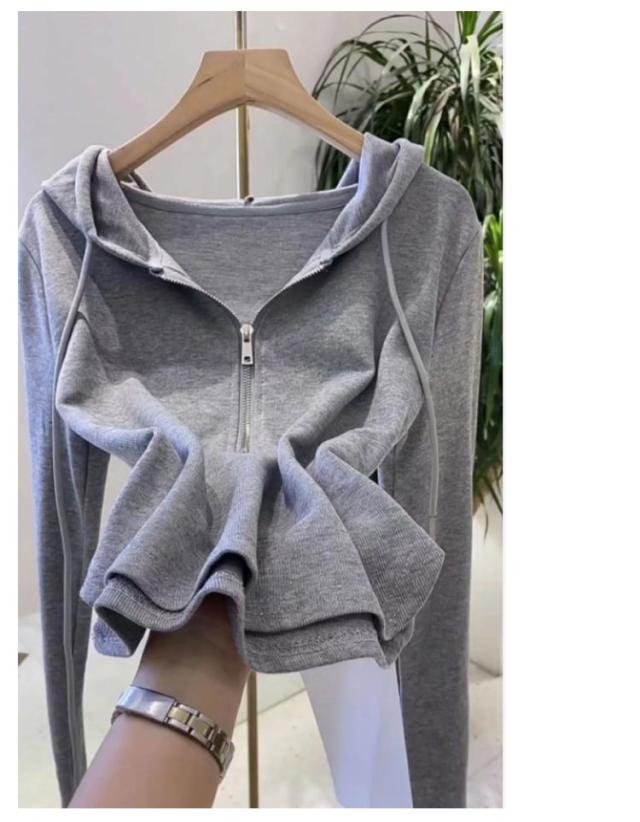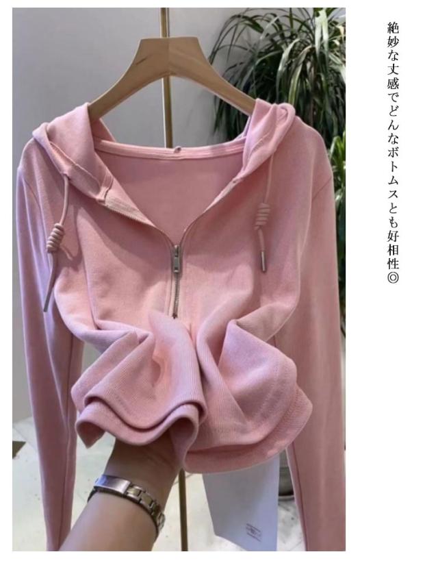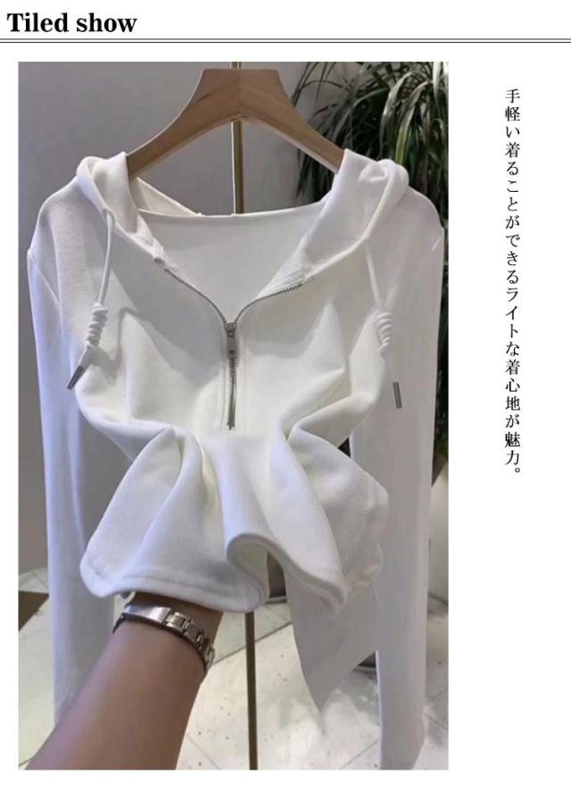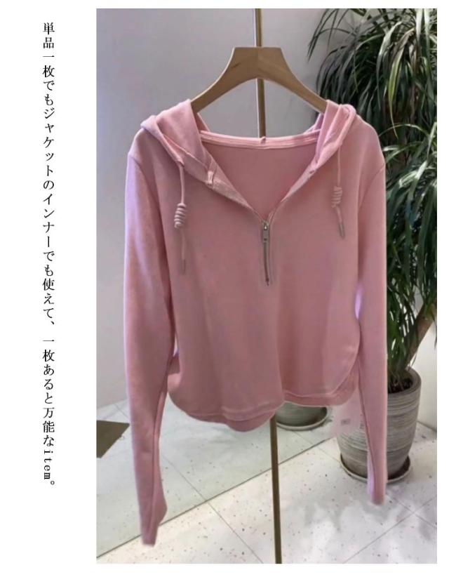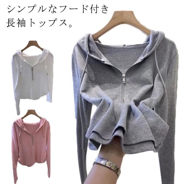 ハーフジッパー フード付き トップス パーカー tシャツ パーカー 長袖 薄手パーカー ショート丈 秋服