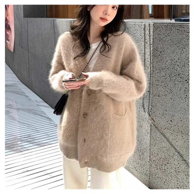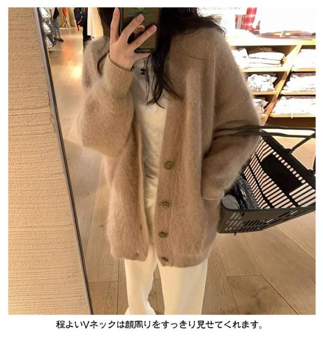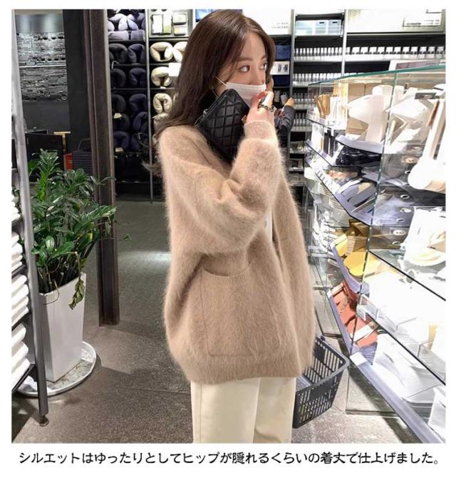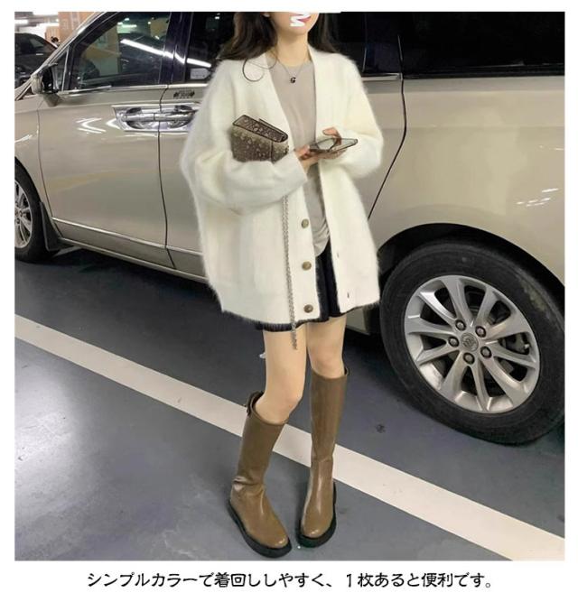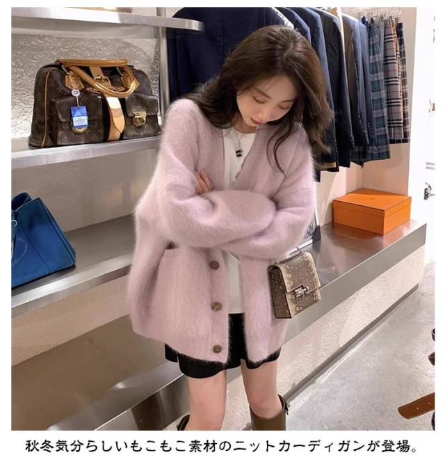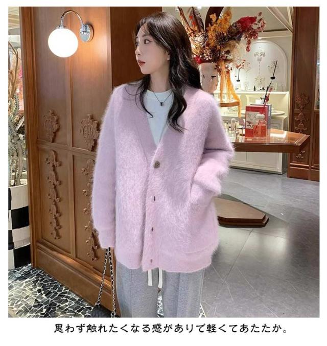 ふわふわ レディース カーディガン ニットカーディガン ニットコート ブラウン ニット ファーカーディガン もこもこ Vネック 大きサイズ ゆったり キレイめ 秋冬 パープル 送料無料