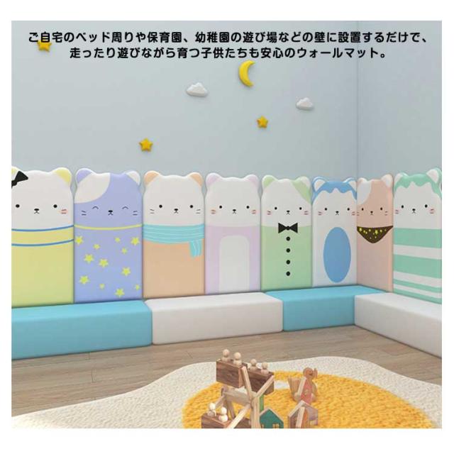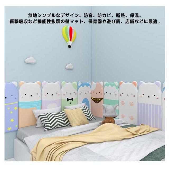 | かわいい猫柄の壁クッション。【極厚3cm】【2枚セット】【全12色】 頭がぶつかっても怪我しない、痛くないからお子様の安全を強力に守ってくれる壁クッション。 赤ちゃんや小さいお子様、ご年配の方がいらっしゃるご家庭や場所には最適です。 環境に優しく、安全無毒の壁マット。どこにも似合う壁クッション。 柔らかいPUに高密度ウレタンスポンジ内蔵で、弾力性のよいクッション性を持ち、ぶつかった時の衝撃を和らげ、吸収し、赤ちゃんや小さいお子様、ご年配の方がいらっしゃるご家庭や場所には最適です。 PUレザーを採用し、汚れがつきにくく、お掃除もかんたん。 無地シンプルなデザイン、防音、防カビ、断熱、保温、衝撃吸収など機能性抜群の壁マット、保育園や遊び馬、店舗などに最適。 ご自宅のベッド周りや保育園、幼稚園の遊び場などの壁に設置するだけで、走ったり遊びながら育つ子供たちも安心のウォールマット。 | |