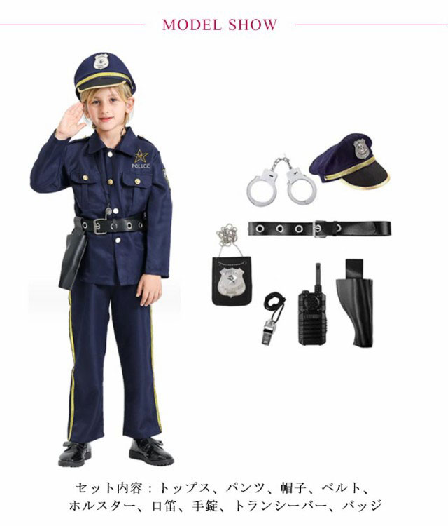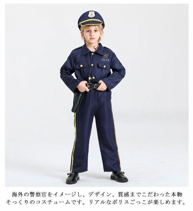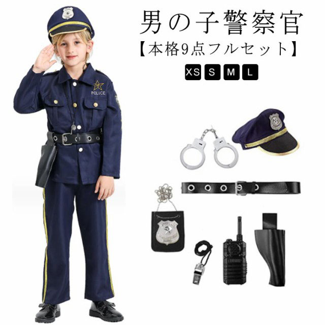 | 【本格9点フルセット】【XS S M L】【男の子警察官】 セット内容:トップス、パンツ、帽子、ベルト、ホルスター、口笛、手錠、トランシーバー、バッジ 【 格好いいデザイン 】細部までこだわった本格的な作りで、すぐに憧れのカッコイイポリスに変身することが出来ます。 【 本格的な作り 】海外の警察官をイメージし、デザイン、質感までこだわった本物そっくりのコスチュームです。リアルなポリスごっこが楽しめます。 【 豪華9点セット 】クールなポリスには欠かせないサングラスもついています♪帽子や手錠など小物の品質も高いので、よりリアリティーな警察官を演出できます。 【 選べるサイズ展開 】サイズが豊富なので、お子様の身長にピッタリ合ったジャストサイズを選べます。 【 様々なシーンで大活躍 】ハロウィンやお誕生パーティーにピッタリ!なりきりごっこが大好きな男の子へのプレゼントにもおすすめです。 | |