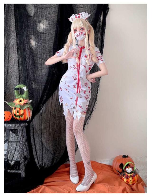 | 【ハロウィン衣装】【ナース服】【M L XL】 キュートでセクシーなワンピタイプのナースコスチューム。 セット内容:ワンピース、帽子、マスク ハロウィン、クリスマス、演劇、学園祭などの各種イベント・パーティーで大活躍♪ かわいいナースのコスプレで大盛り上がり♪ スタイルアップやSNS映えを叶えてくれるアイテムです。 | |