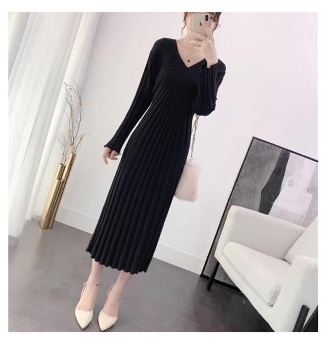ニットワンピース リブニット レディース ワンピース Vネック ニットワンピ きれいめ 着?せ 秋冬 春 細身 幅広リブ ニットワンピタイト 長袖 ロングワンピース ミモレ丈 重ね着 レイヤード あったか 大人女性 上品 フォーマル 二次会 体型カバー 送料無料 ギフト