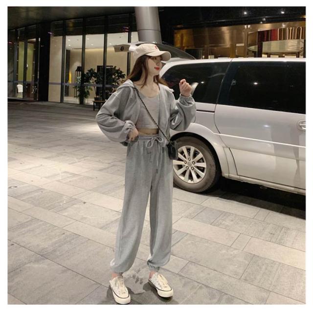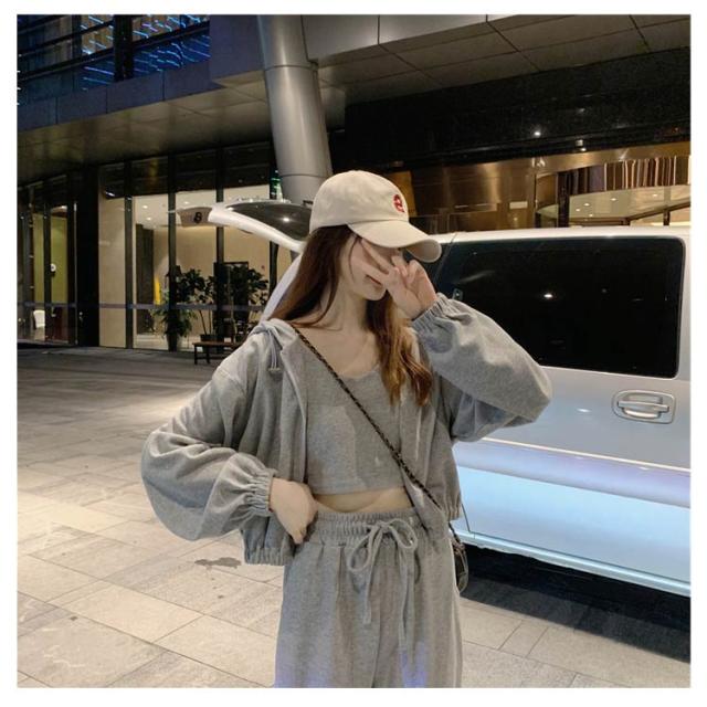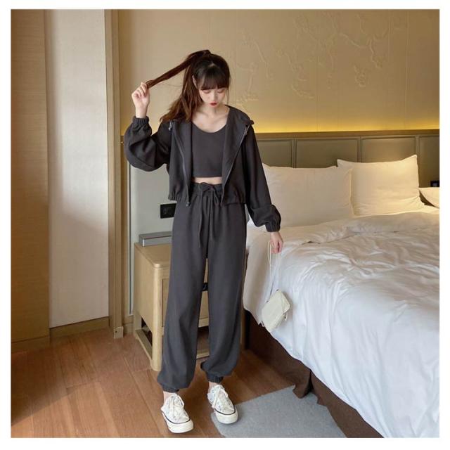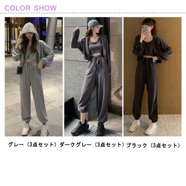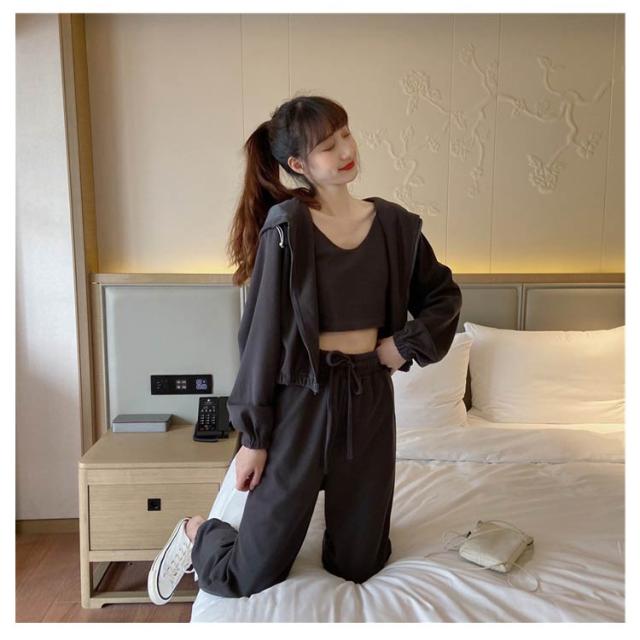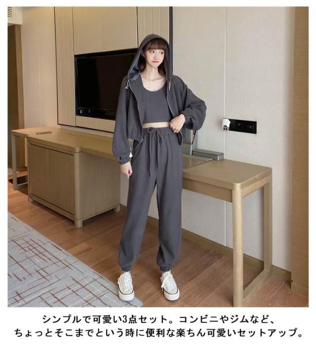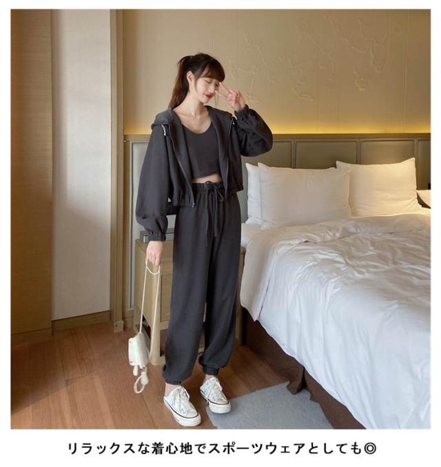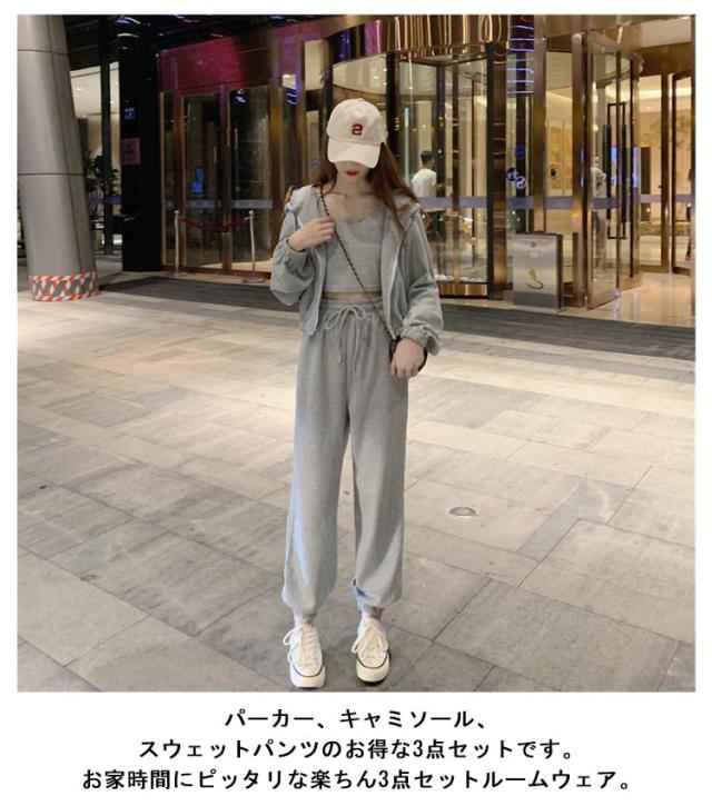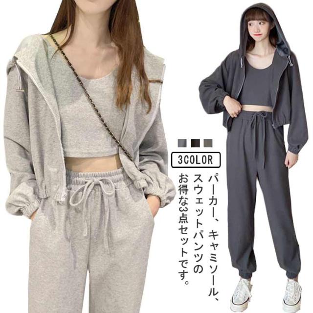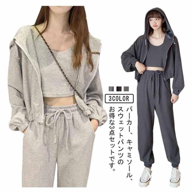 セットアップ レディース 長袖パーカー キャミソール スウェットパンツ 3点セット フード付き パーカー ロングパンツ ポケット付き ルームウェア ワンマイルウェア 部屋着 韓国ファッション シンプル カジュアル スポーツウェア おしゃれ 春 秋 冬 ダンス 練習着 学生 S-2XL