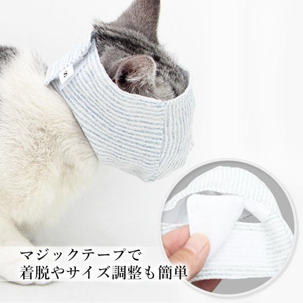 ・目隠しをすることにより猫を落ち着かせ、爪切りの際の暴れや噛みつきを抑えます。
