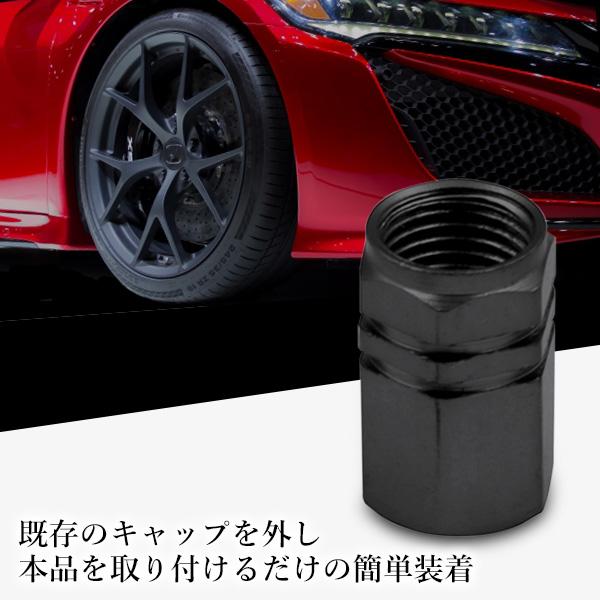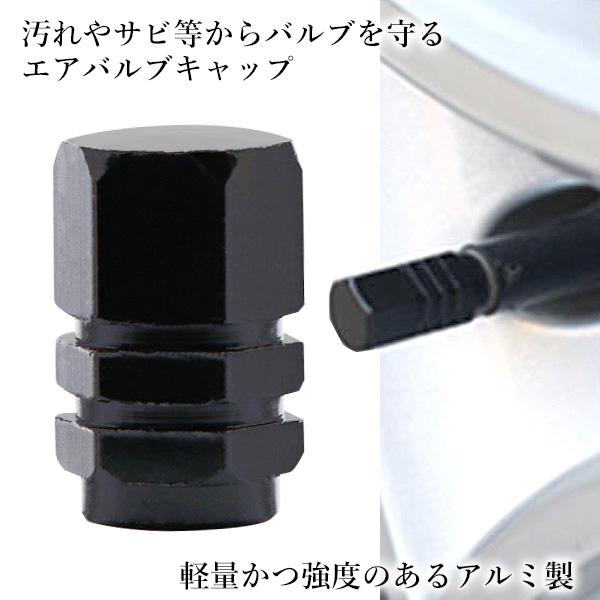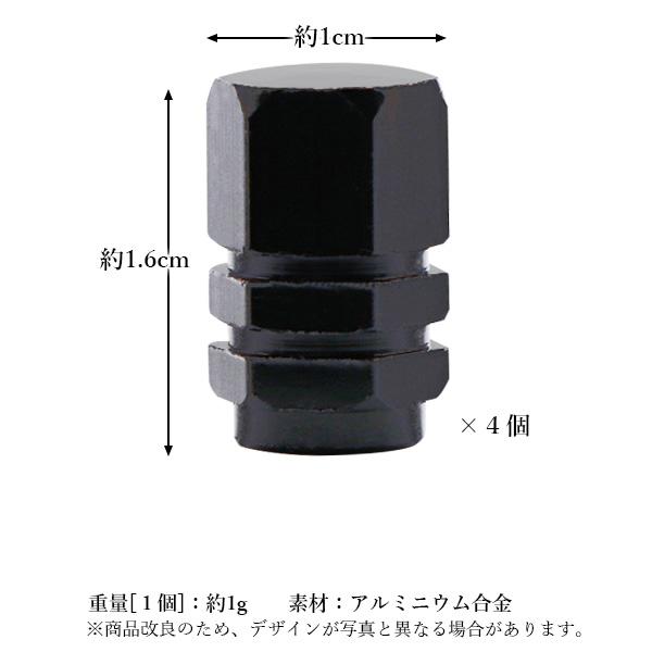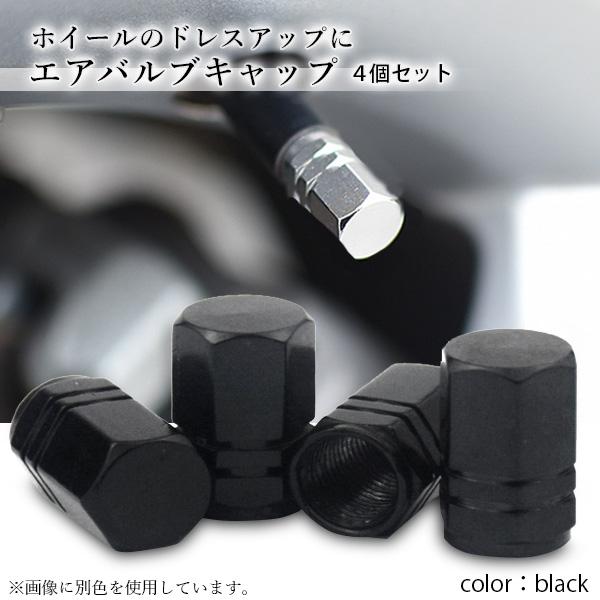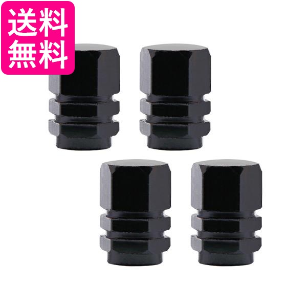 タイヤ エアバルブキャップ 4個セット エアーバルブ カバー 交換 車 タイヤ アルミ製 六角 ドレスアップ ブラック (管理S) 送料無料