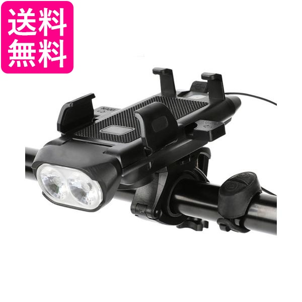 自転車 ライト 後付け 充電式 LED 夜間 USB充電 防水 スマホホルダー モバイルバッテリー ブラック (管理S) 送料無料