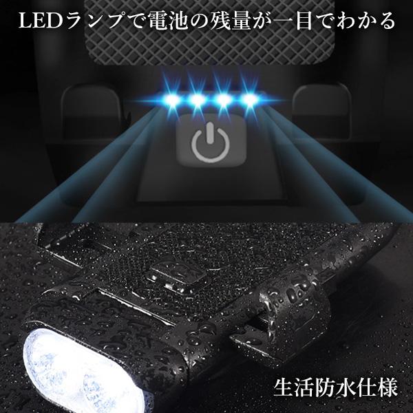 ・LEDランプで電池の残量が一目でわかります。