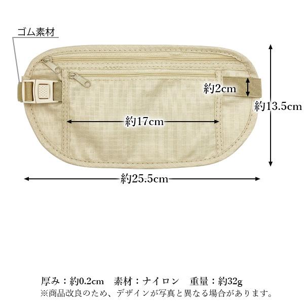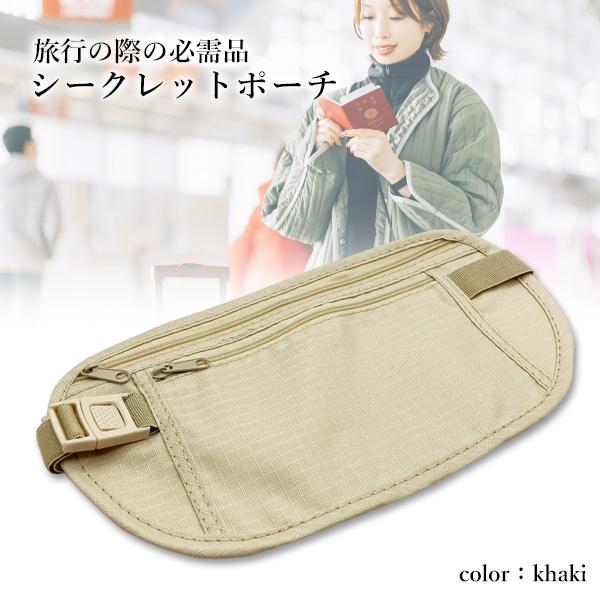 海外 旅行 ウエスト ポーチ シークレットポーチ トラベルポーチ 薄い セキュリティ パスポート 貴重品 盗難防止 カーキ (管理S) 送料無料