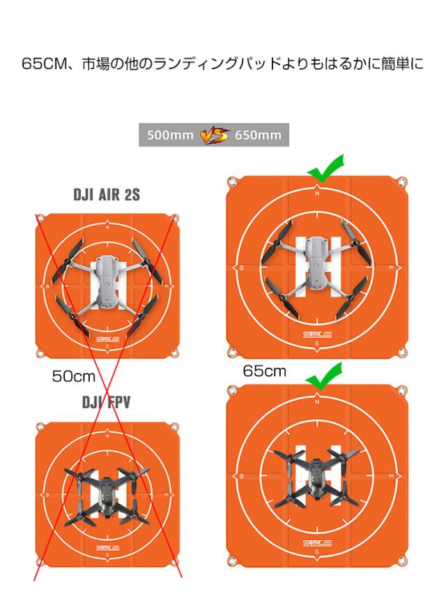 | 商品名 | DJI Air 3 ドローン用 ドローン 着陸パッド 両面防水 ヘリパッド交換 折りたたみ式 快速折り畳み ドローン駐車パート 着陸マット PU ドローン ヘリポート 65cm ヘリポート 携帯便利 for DJI Air 2S/Mini 2/Mavic Mini/Mavic Air 2/Mavic 2 Pro/ Spark Tello汎用 | |||||