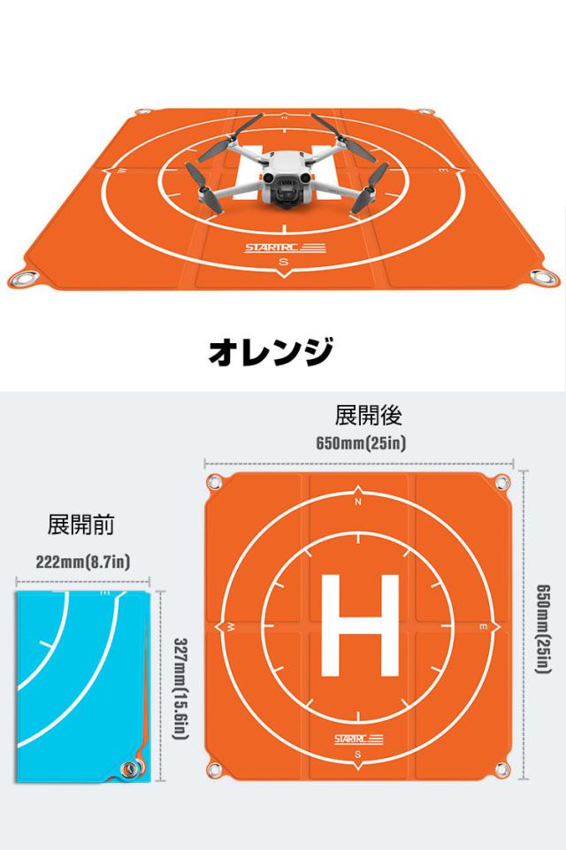 | 特徴 | 鮮やかな色の可能性、さまざまな環境に適しています 【機能と携帯性】両面カラーデザインがドローンの位置を際立たせます。 耐久性があり、使いやすく、防水性と軽量性があり、裏返して使用できます。 【プレミアム防水素材】STARTRCランディングパッドは、軽量で汚れに強い高品質の防水PU PVC素材でできており、ボトル入り飲料水でエプロンをリフレッシュできます。 【パーフェクトデザイン】着陸位置を強調した両面カラーデザイン(ブルーオレンジ)、折りたたんで収納が簡単、防水収納袋付きで屋外への収納や持ち運びも簡単。 【商品品質】 商品の管理・品質については万全を期しておりますが、万一ご注文と異なる商品・不良品が届いた場合は 商品到着後7日以内にお問い合わせフォームにてお名前・受注番号などをご記入の上、ご連絡頂いた場合のみ対応となります。 | |||||