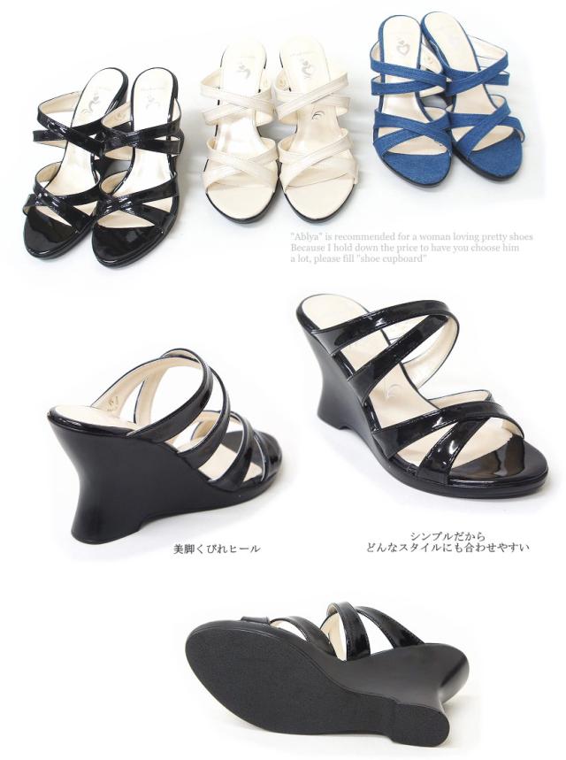【送料無料】 サンダル ウエッジソール ミュール エナメル レディース sm2034