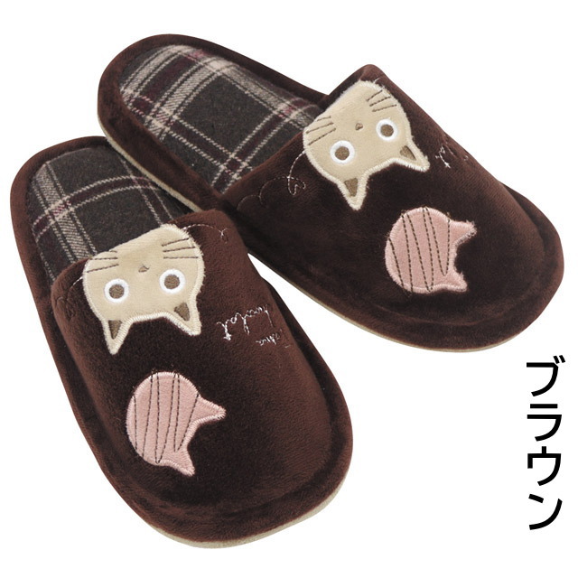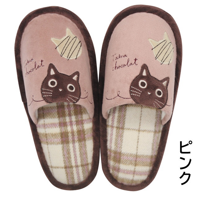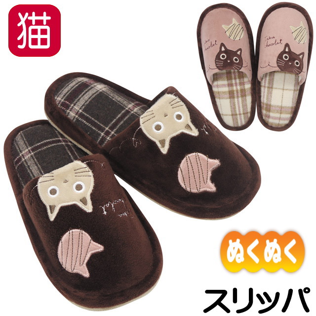 スリッパ 猫 たま チェック 起毛 あったか 秋冬 ルームシューズ 室内履き カジュアル 人気 ペア カップル 女性 レディース キッズ ギフト