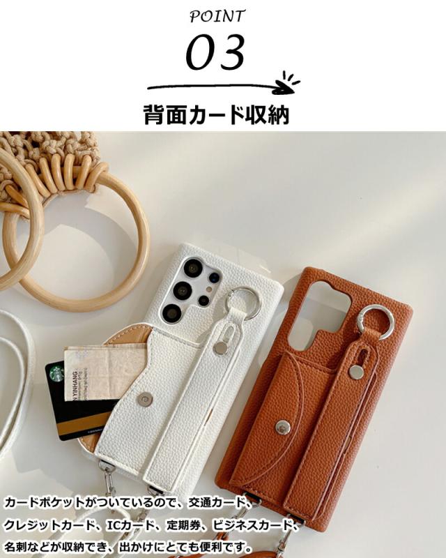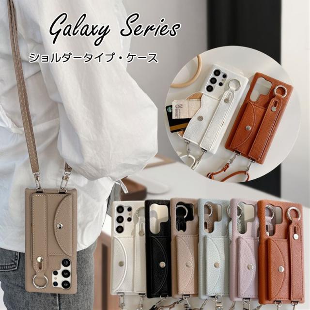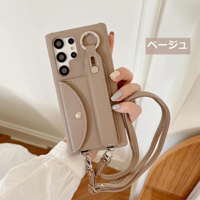 Galaxy スマホケース GalaxyS23用 ベージュ ショルダータイプ Galaxy S23 Ultra S22 S21 S24 Ultra S24ケース ショルダーストラップ ギャラクシー S21+ Plus S20 S20+ カバー スマホショルダー Galaxy A55用 A53 A54 A52 5G スマホカバー カード入れ Note20Ultra Note10+