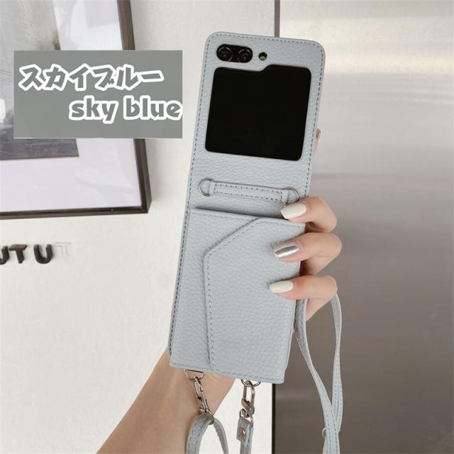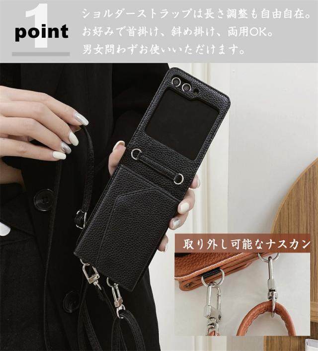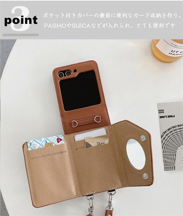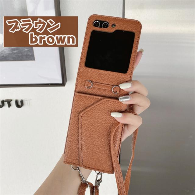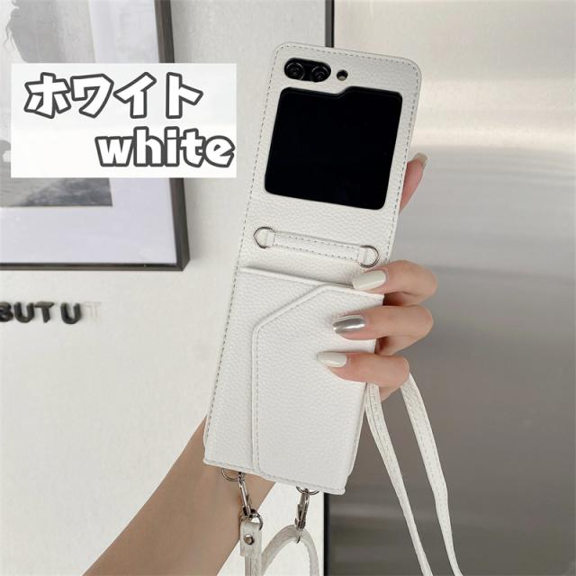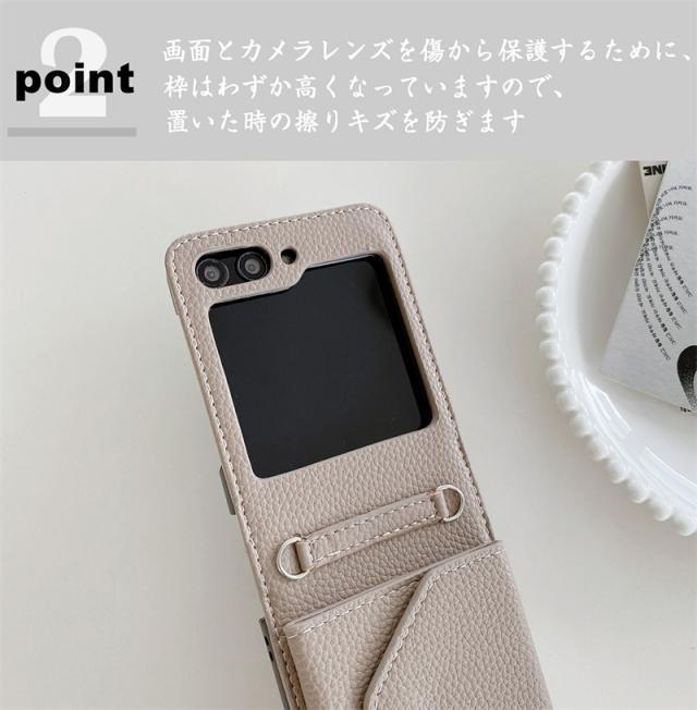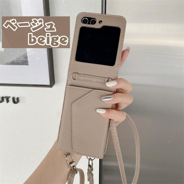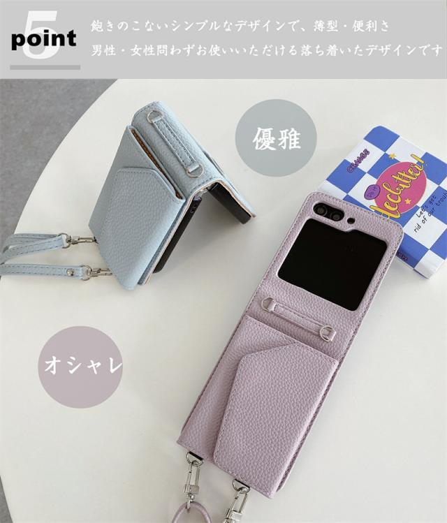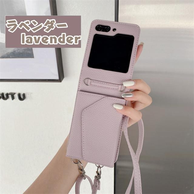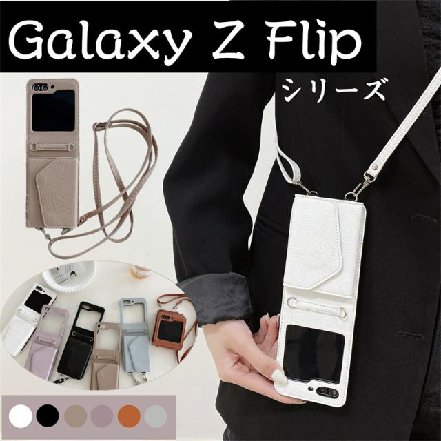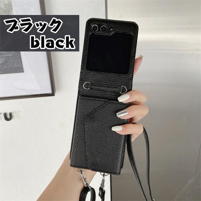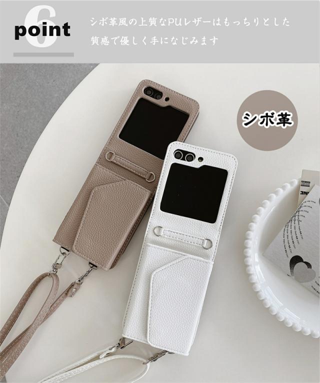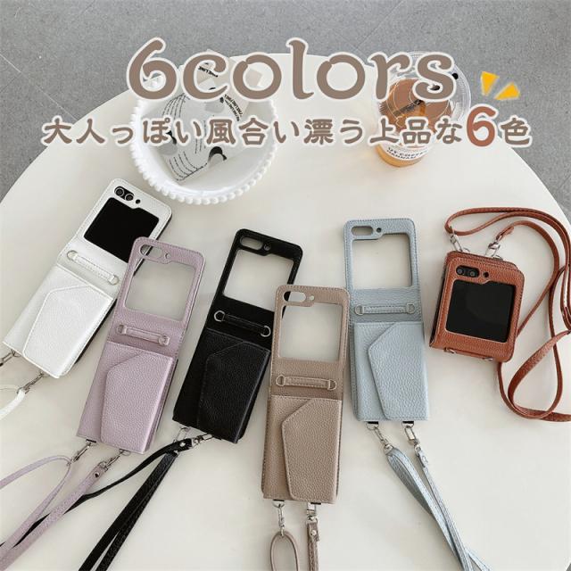 【楽天&SNS大流行】ギャラクシー Galaxy Z Flip5 Flip4 Flip3ケース ICカード収納 カバー ストラップ 持ち歩く ギフト TPUレザー カワイイ お洒落 耐衝撃 女子 無地 シンプル