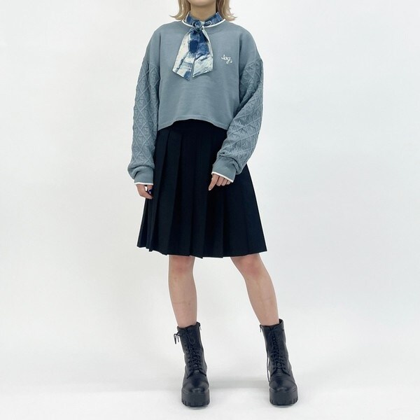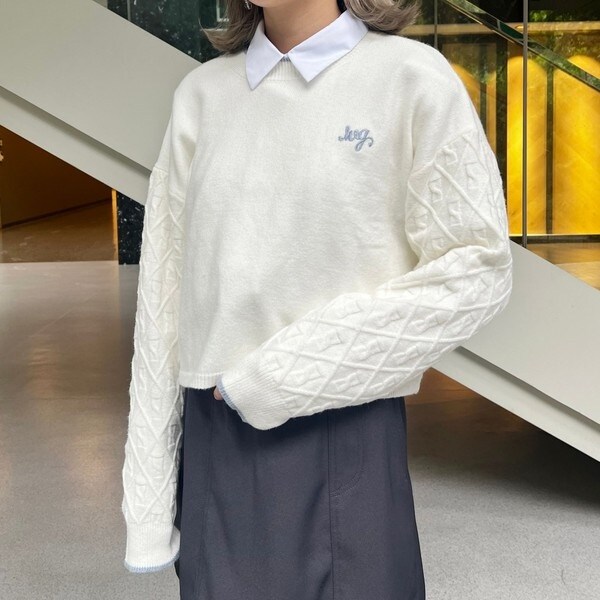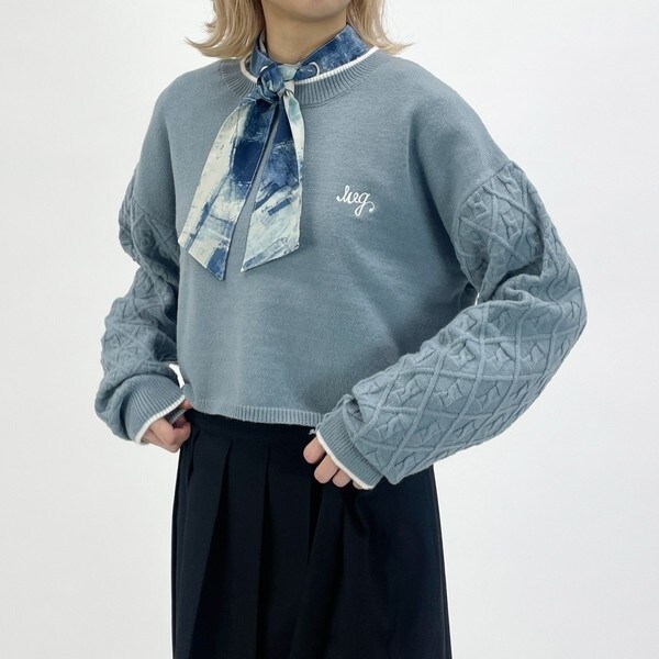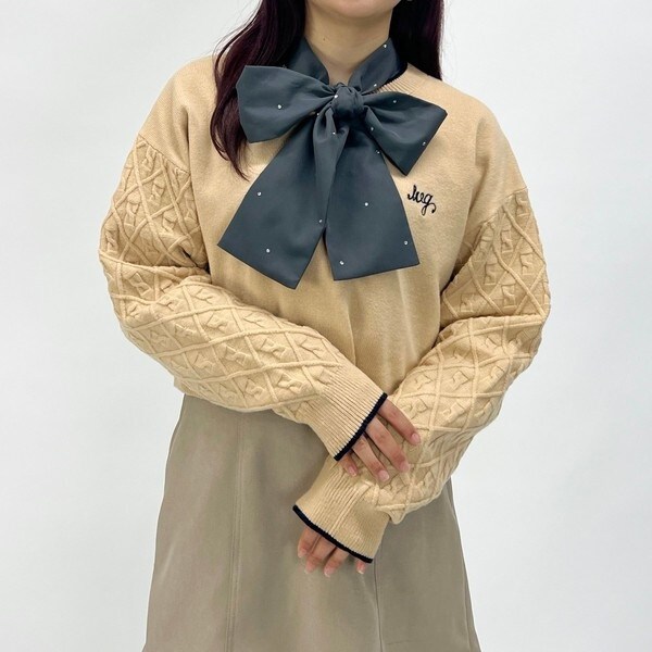 袖のみダイヤ柄の編地で、目を惹く配色にこだわりました。