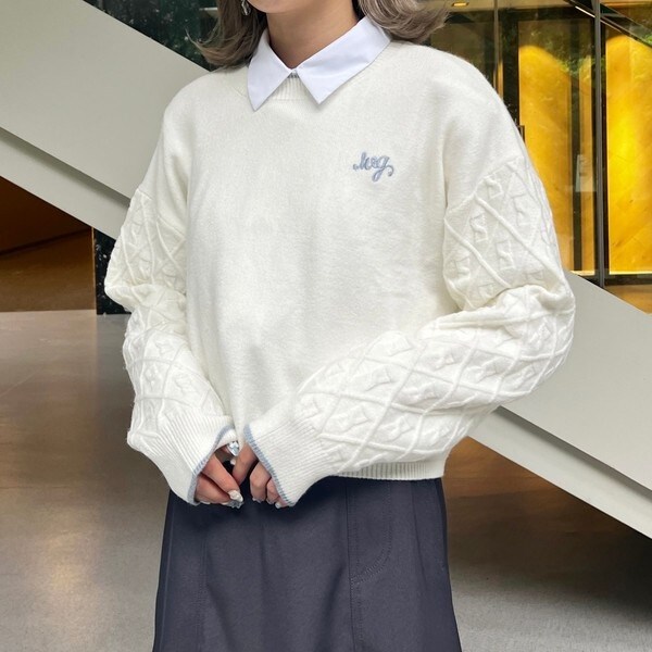 ボリュームスリーブで大人可愛いく、一枚で着ても、インナーにブラウスを合わせるスタイリングもおすすめ。