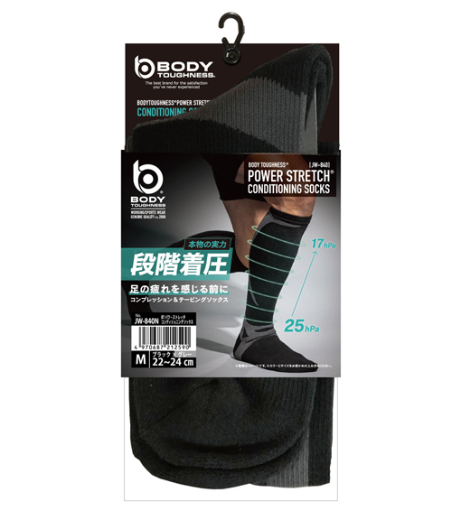 ボディタフネス BT パワーストレッチコンディショニングソックス(ブラック×グレー・サイズ:M) body toughness JW-840N-M返品種別B