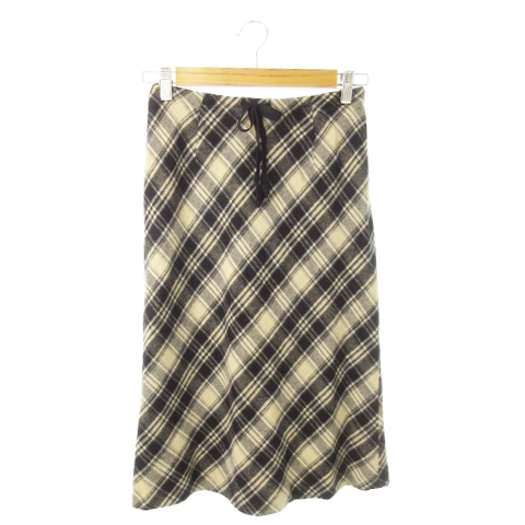 【中古】ブレッツァブルー BREZZA BLU スカート タイト ミモレ ロング ウール チェック リボン 38 ベージュ /AO23