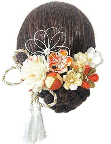 JZOON 髪飾り つまみ細工 七五三 成人式 浴衣 袴 着物 振袖 和装 花 水引 卒業式 結婚式 鈴付き 手作り
