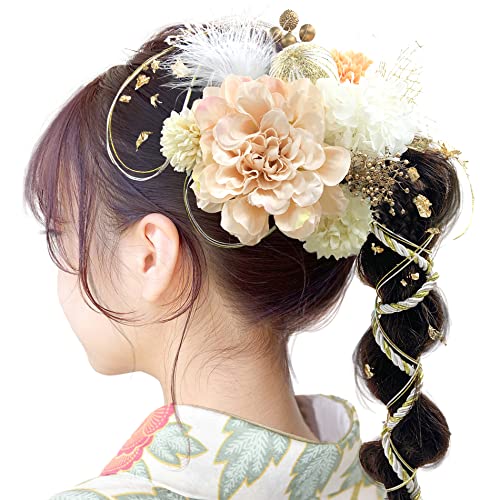 JZOON 髪飾り成人式 髪飾り 8色 ドライフラワー 造花飾り 水引 紐 ダリア ヘアーアクセサリー 和玉 かすみ草 金箔 和服 着物 振袖