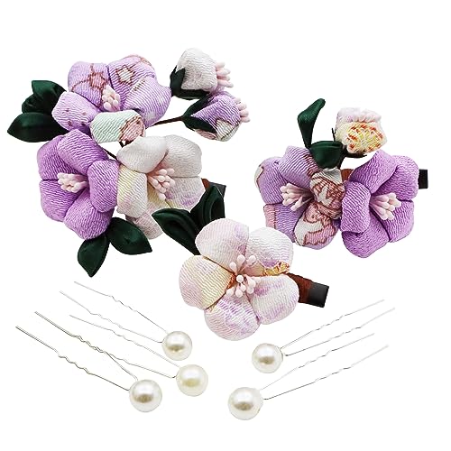 JZOON 髪飾り3点セット つまみ細工 5色展開 椿 カメリア 成人式 七五三 浴衣 袴 着物 振袖 和装 花 卒業式 結婚式 パール 手作り