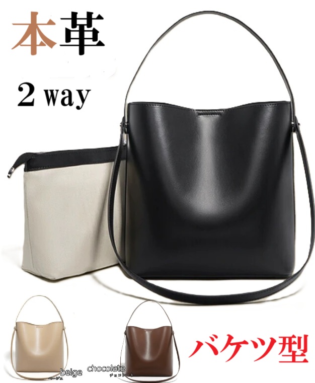 本革 バケツ型トートバッグ ハンドバッグ・ショルダーバッグ2Wayタイプ