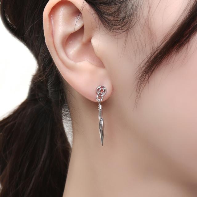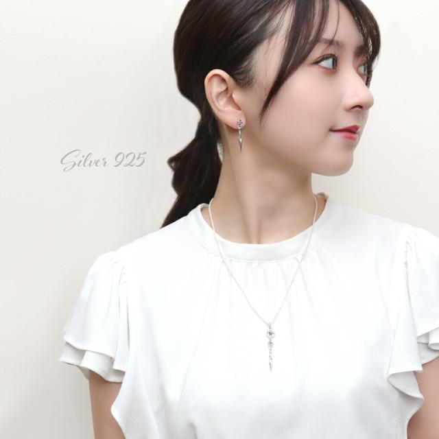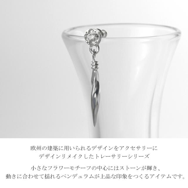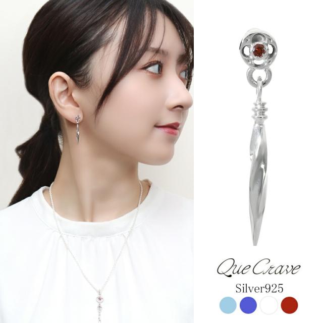 Que Crave トレーサリー フラワー ピアス 1P 片耳用 シルバー925 シルバーアクセサリー スタッドピアス ロングピアス 揺れる ガーネット ジルコニア