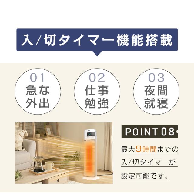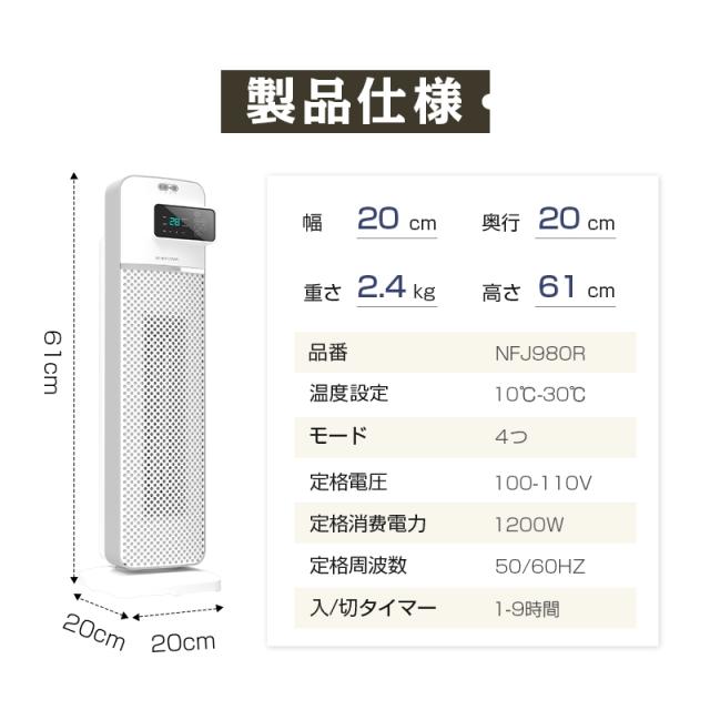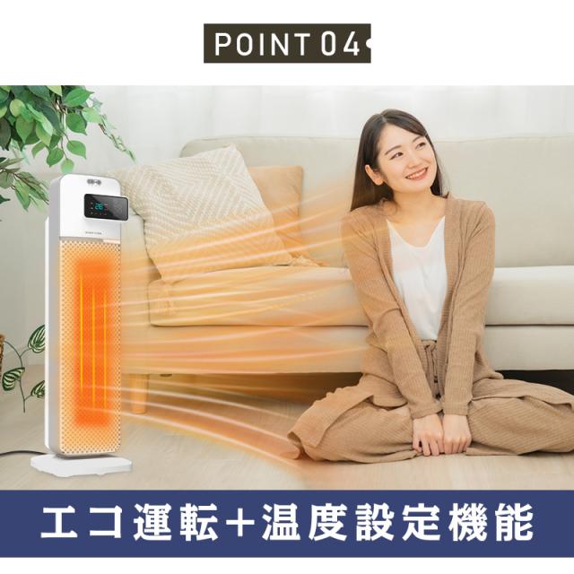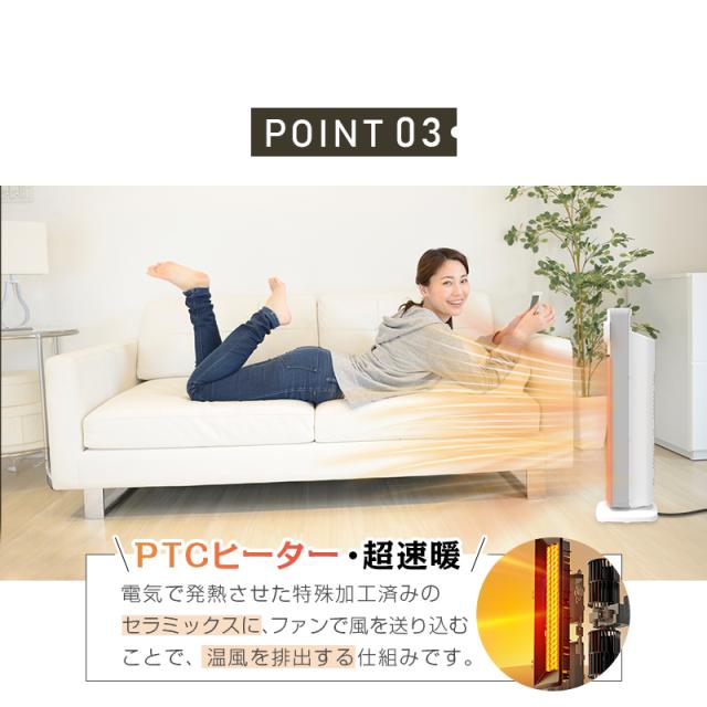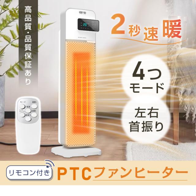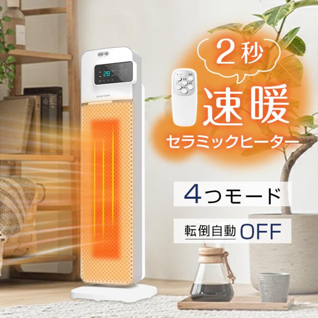 セラミックヒーター ファンヒーター 電気ファンヒーター タワーファンヒーター 入切タイマー エコモードあり 2秒速暖 おしゃれ リモコン付き 【PL保険加入済み製品・安心】
