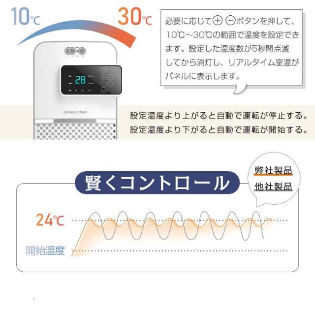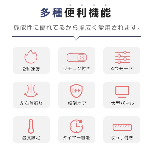 - 使っていたセラミックヒーターが急に壊れてしまい、慌てて購入しましたが、思っていた以上に満足しています。 リモコン付きなので立たずに簡単操作でき、本体にあるパネルに室温も表示されます。 普段はリビングで...