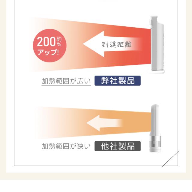 【PTC 電気ヒーター】セラミックヒーターは内蔵されているセラミックを発熱させることで空気を温めます。熱せられた空気が上昇し、部屋の空気が自然に対流することで部屋全体を暖める構造です。電気式なので、スイッチを入れればすぐに温風が出るので、即暖性に優れています。