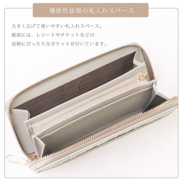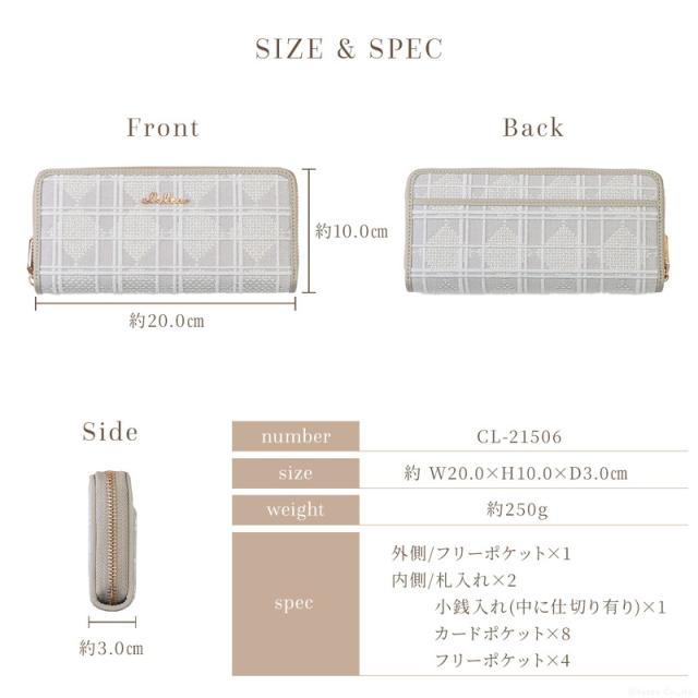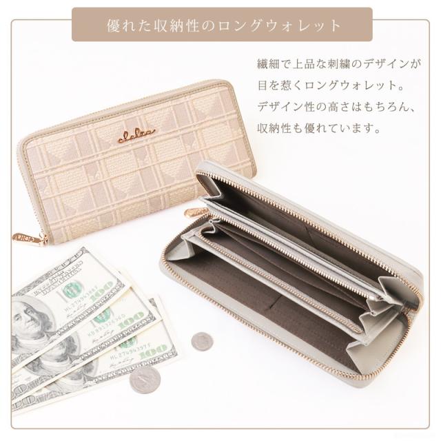 商品カテゴリ:【ピンク】【ベージュ】【グレー】 長財布 ロングウォレット 財布 ラウンドファスナー カードポケット 小銭入れ 多機能 大容量 刺繍 本革 総柄 格子柄 チェック クラシック フェミニン くすみカラー きれいめ 高級感 高見え 大人かわいい 使いやすい お出かけ 新生活 普段使い