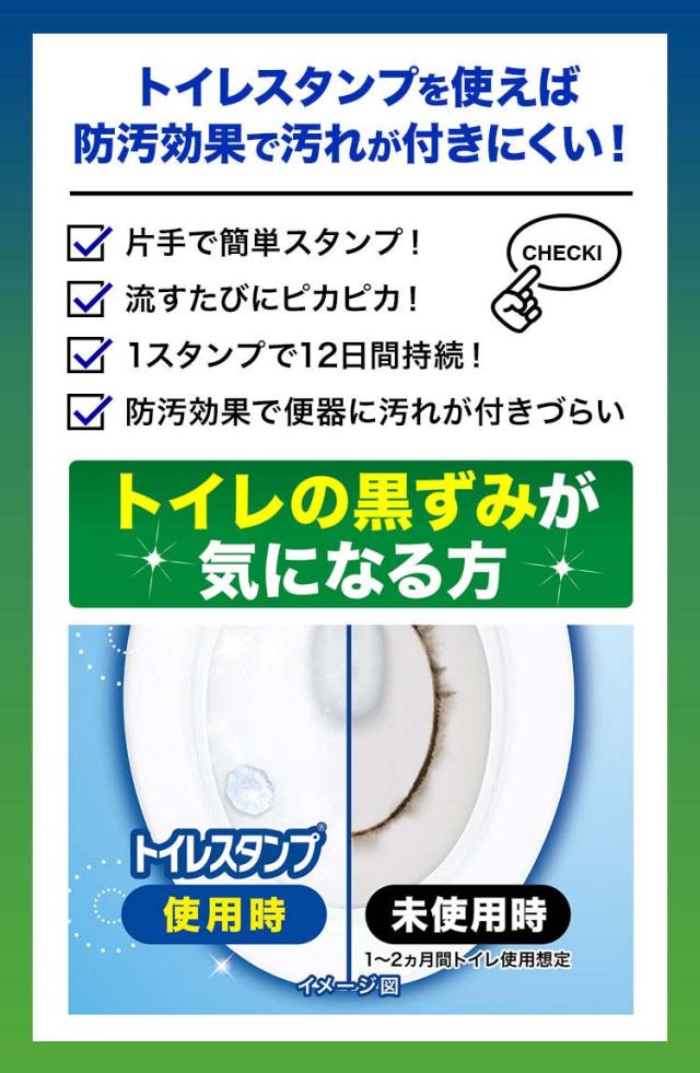 ●1回のスタンプでキレイが12日間続く!流すたびにしっかり洗浄してキレイが続くトイレのスタンプ(※1日約10回流した場合)