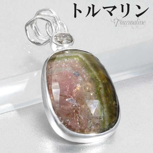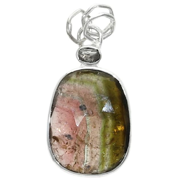 【新宿 銀の蔵】 カット ウォーターメロントルマリン 天然ダイヤモンド シルバー ペンダントトップ