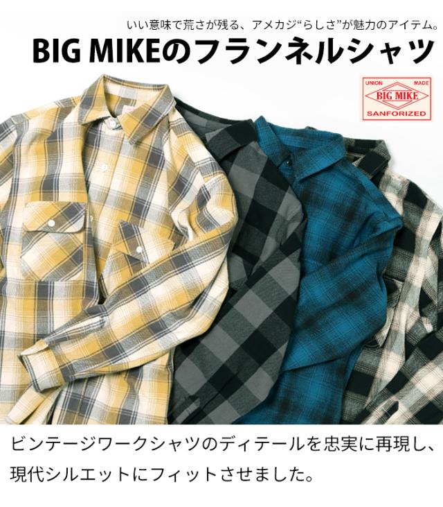 BIG MIKE ビッグマイク ネルシャツ メンズ ヘビー フランネルシャツ チェックシャツ 長袖 シャツ アメカジ ストリート チェック 秋 冬 ブラック ブルー イエロー プレゼント ギフト